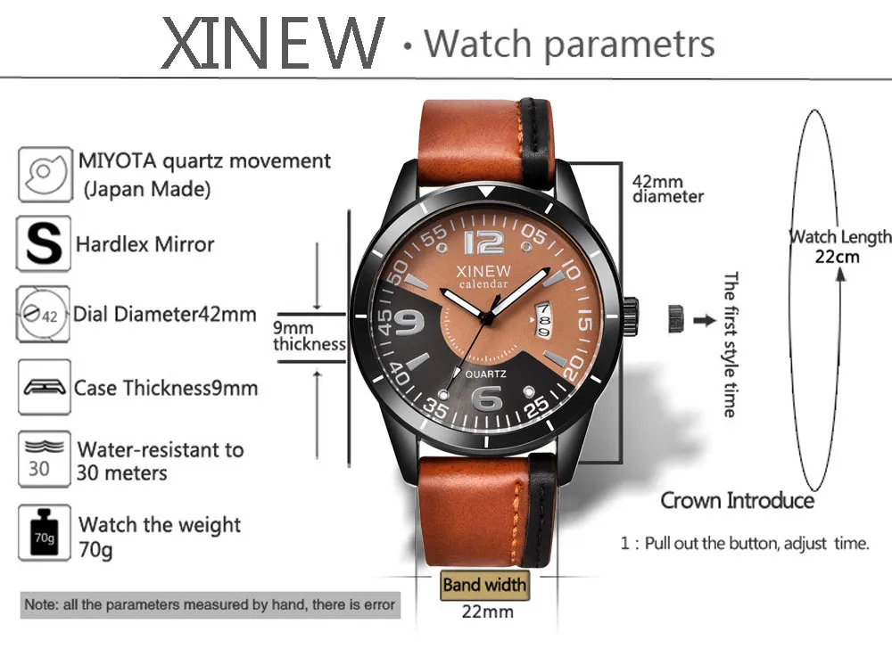 Feature: 100% New and high quality Gender :Men Fashion Lovely And High Quality Trendy Watch! Movement:Quartz Watchcase Diameter:4.8cm approx. Watchcase Thickness:0.9cm approx Band Length:25cm approx. Band Width:2.2cm approx. Band material: Leather Case material: Stainless Steel NOTE:Daily Water Resistant. You can wear it wash your hand. But not for swimming! Package...