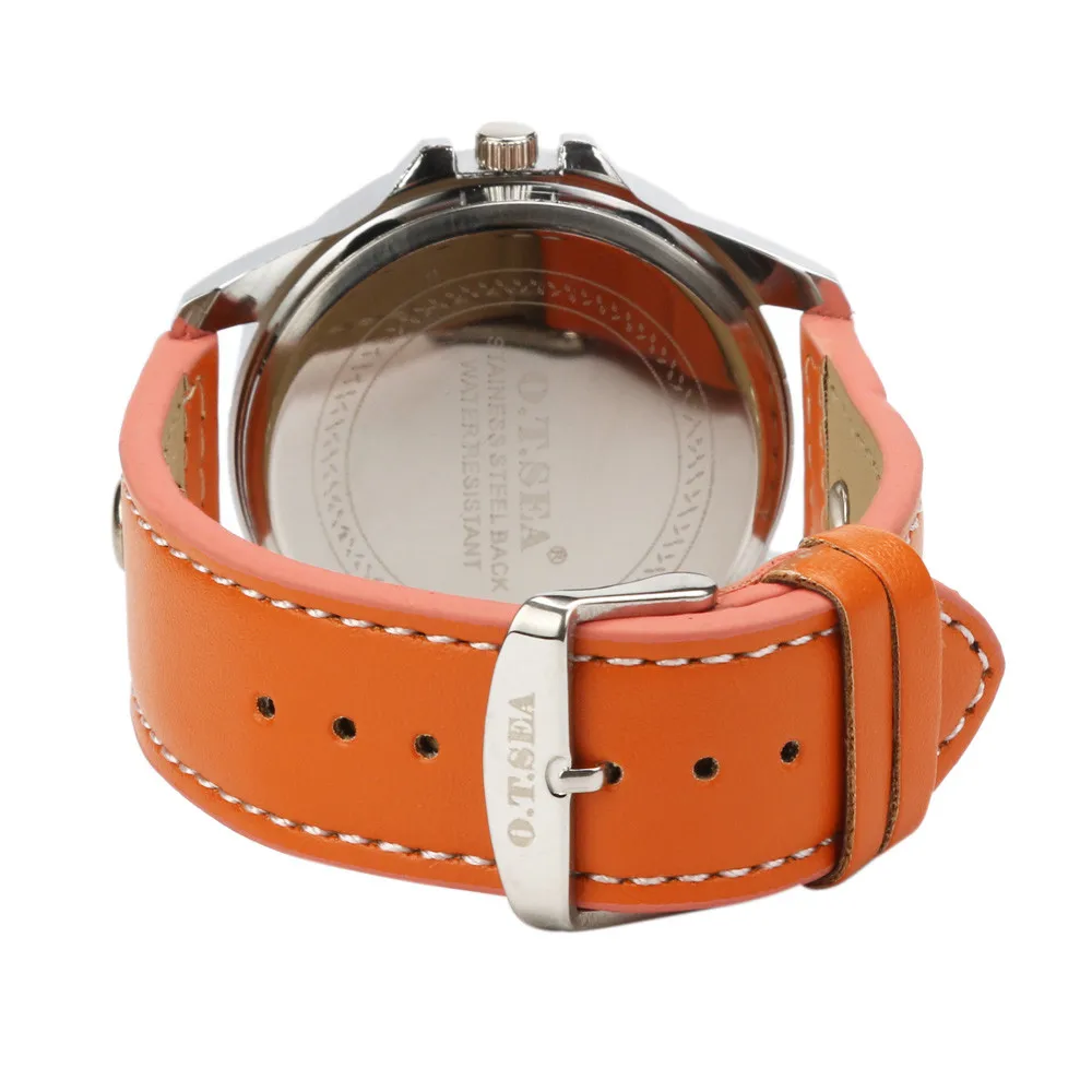2016 Men's Sports Quartz Watches Mens Watches Luxury Leather Wristwatches Features: Color:Orange/blue Total length: Approx. 25.5cm /10.03inch Material: Metal + Leather Quantity: 1 pc Net Weight: Approx. 50g Rote table watch surface design, elegant and fashionable Suitable for men, perfect choice for your family life Traditional time display, it is...
