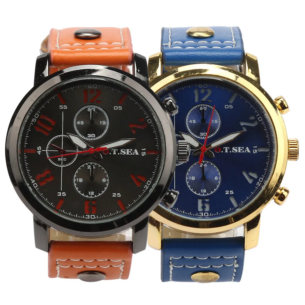 2016 Men's Sports Quartz Watches Mens Watches Luxury Leather Wristwatches