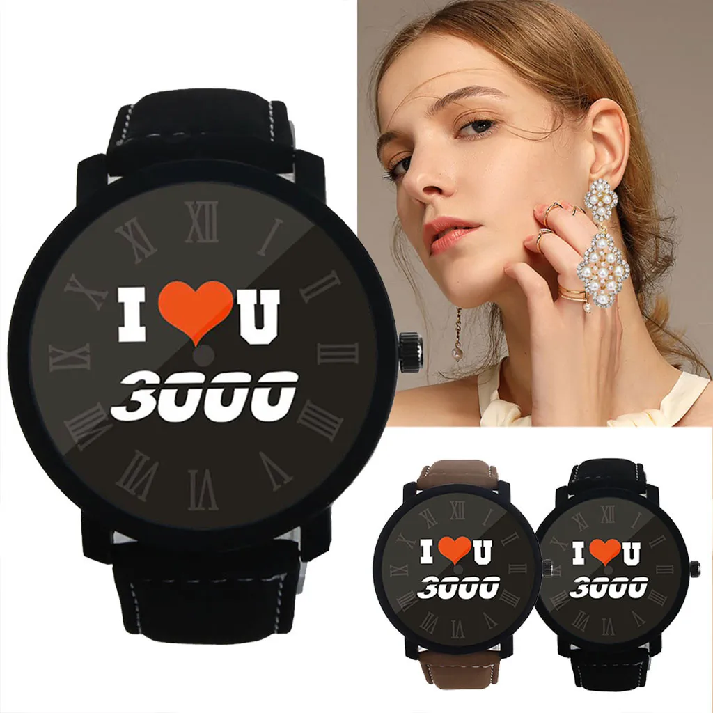 Men's Women Watch I LOVE YOU 3000 Fashionable Quartz Simple Leather Belt Watches Female Clock Relojes Hombre 2019 zegarek meski