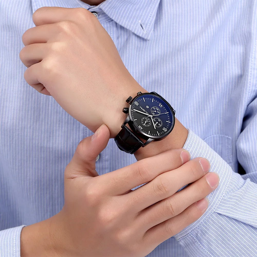 Men's Wrist Watch Leather Military Alloy Analog Date Quartz Business wristwatch mens watches mens 2019 relogio masculino