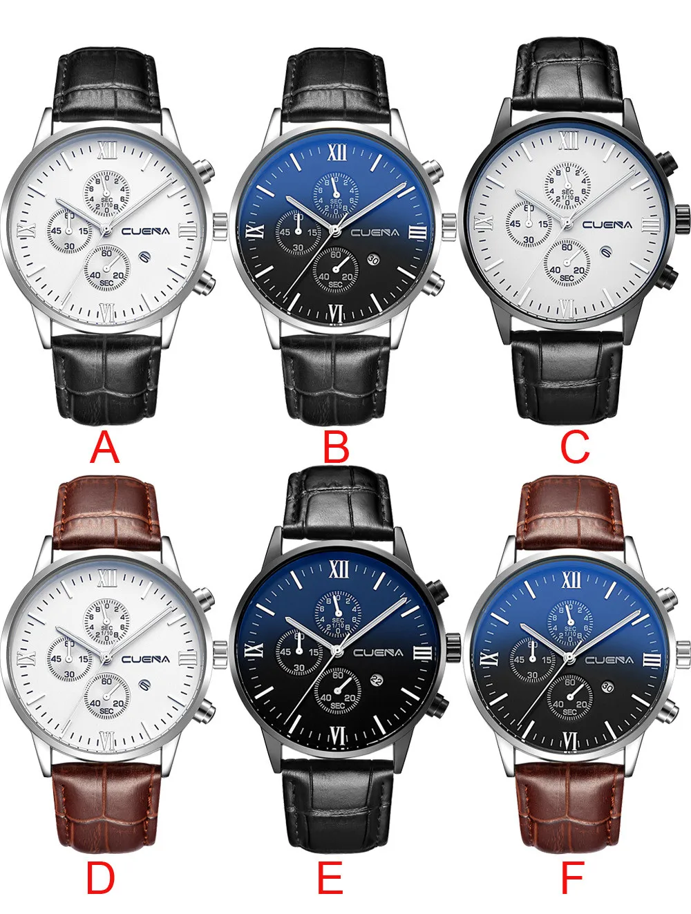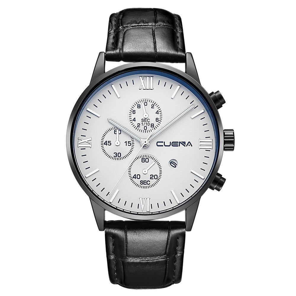 Men's Leather Military Alloy Analog Date Quartz Wrist Watch Business Watches
