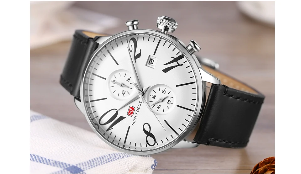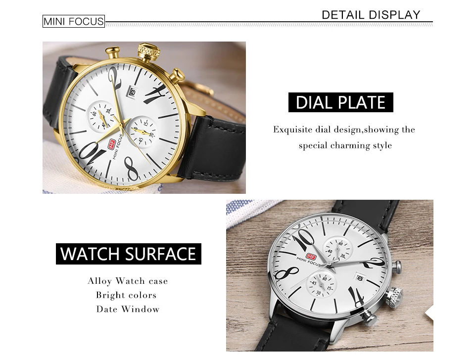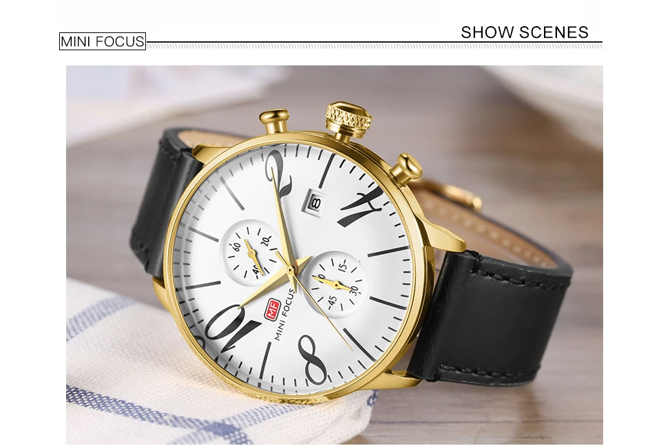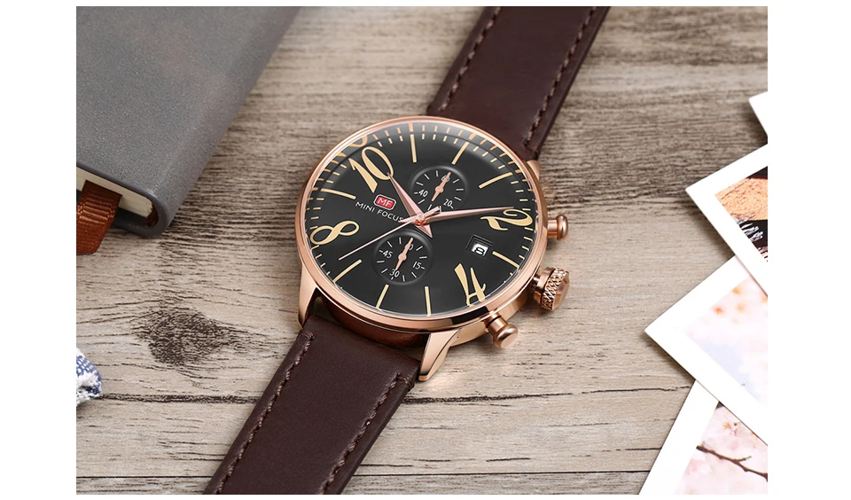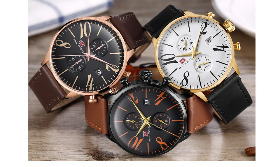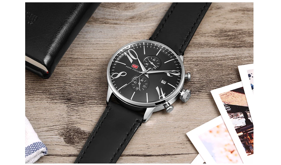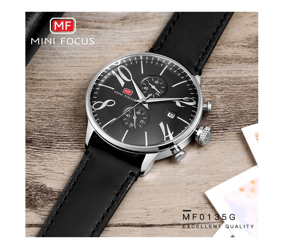 MINI FOCUS Black Watch Men Sports Watches For Men Clock Leather Watch Strap Fashion Men's Wristwatch Quartz Luxury Brand Relogio