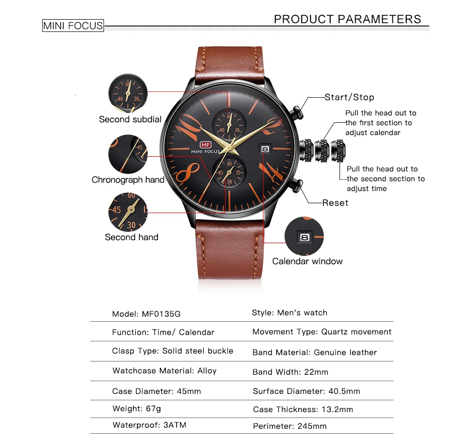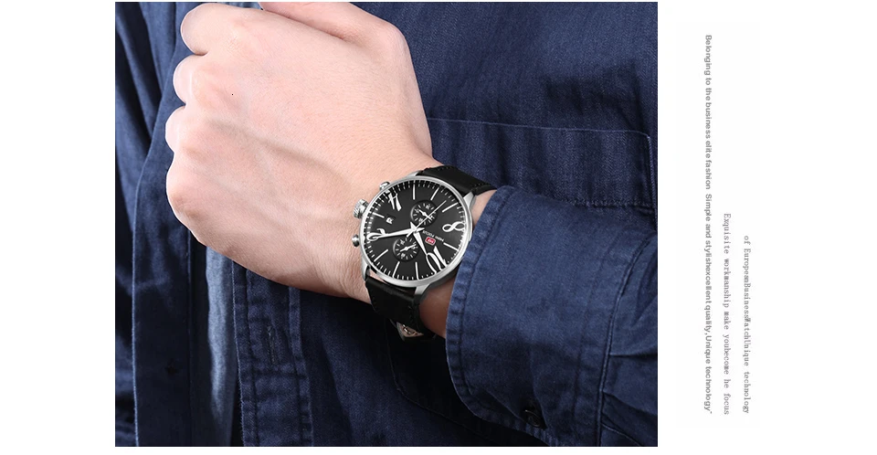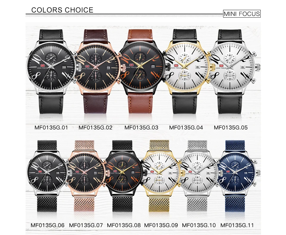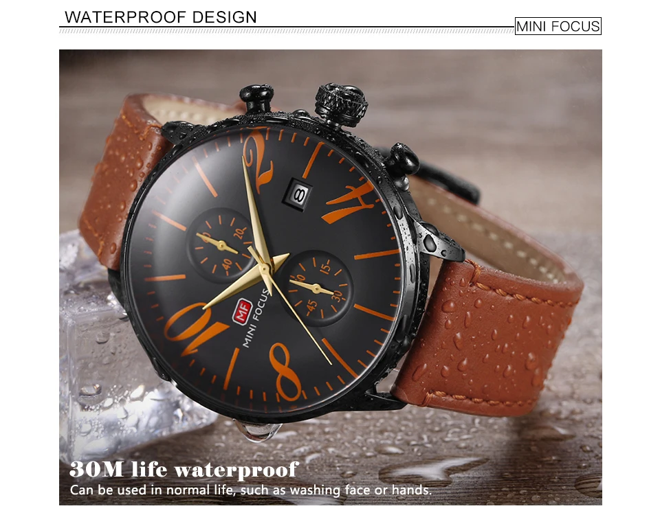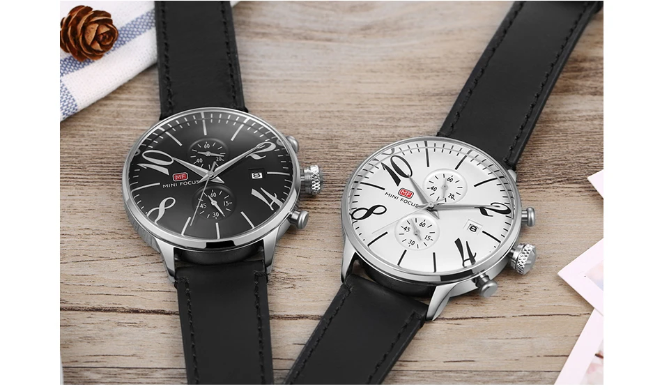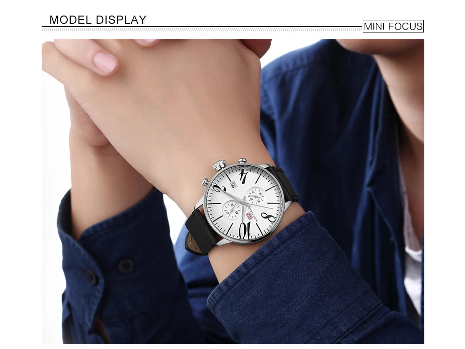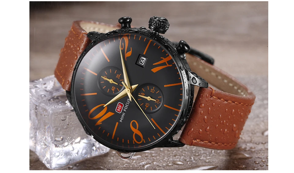 MINI FOCUS Black Watch Men Sports Watches For Men Clock Leather Watch Strap Fashion Men's Wristwatch Quartz Luxury Brand Relogio