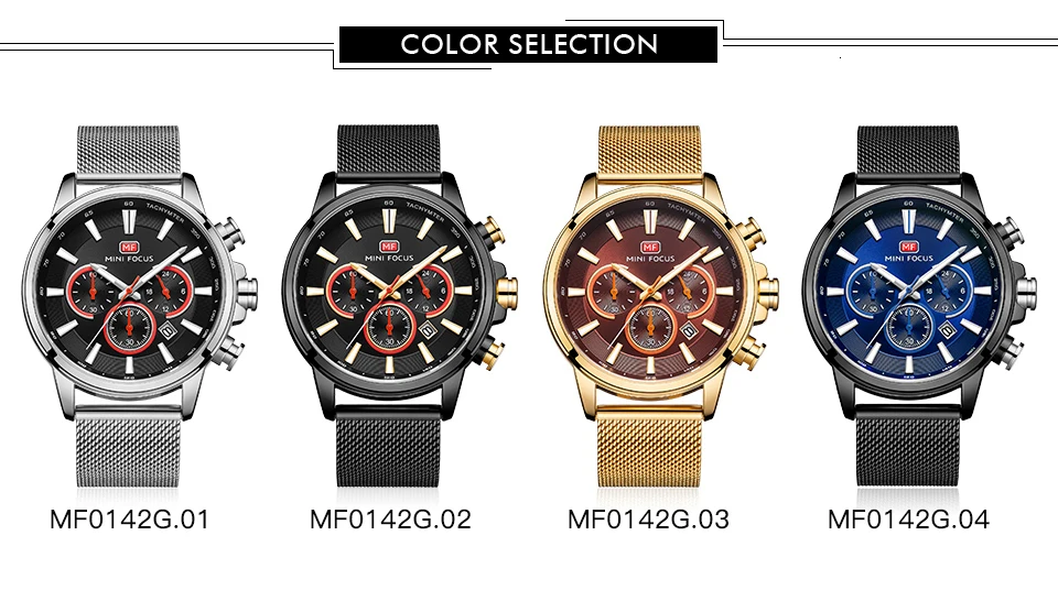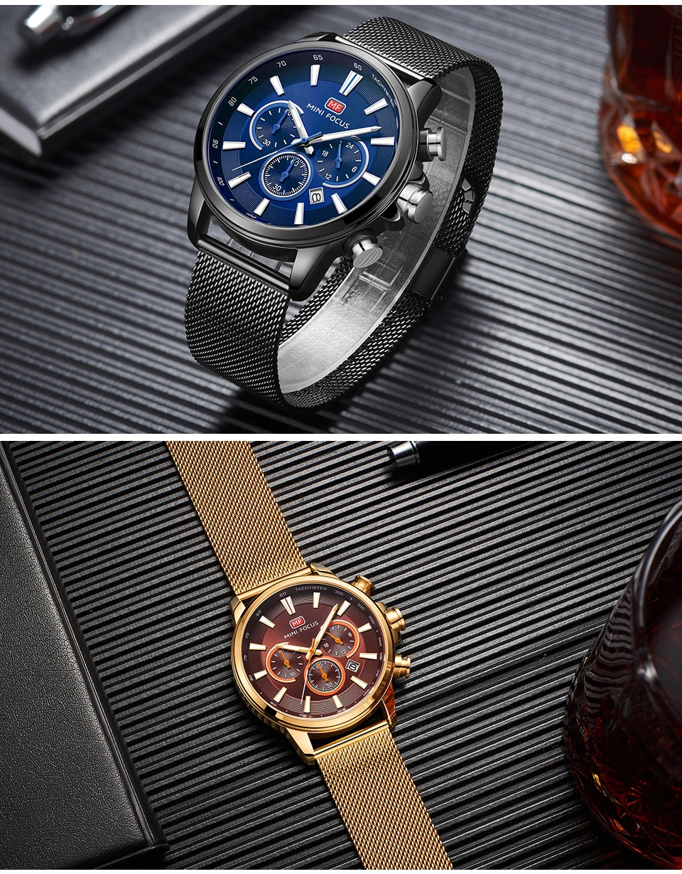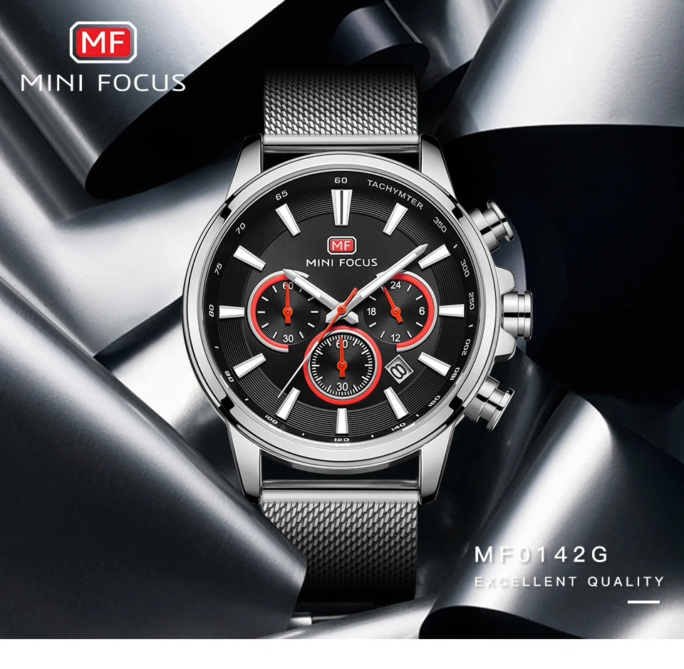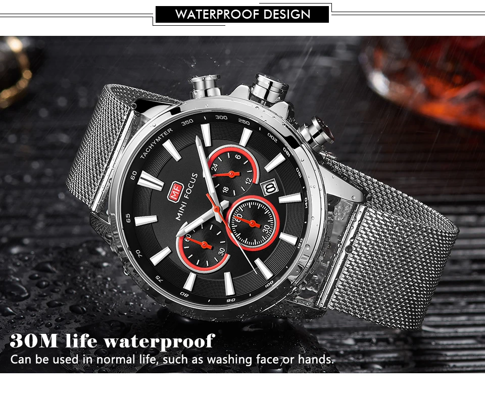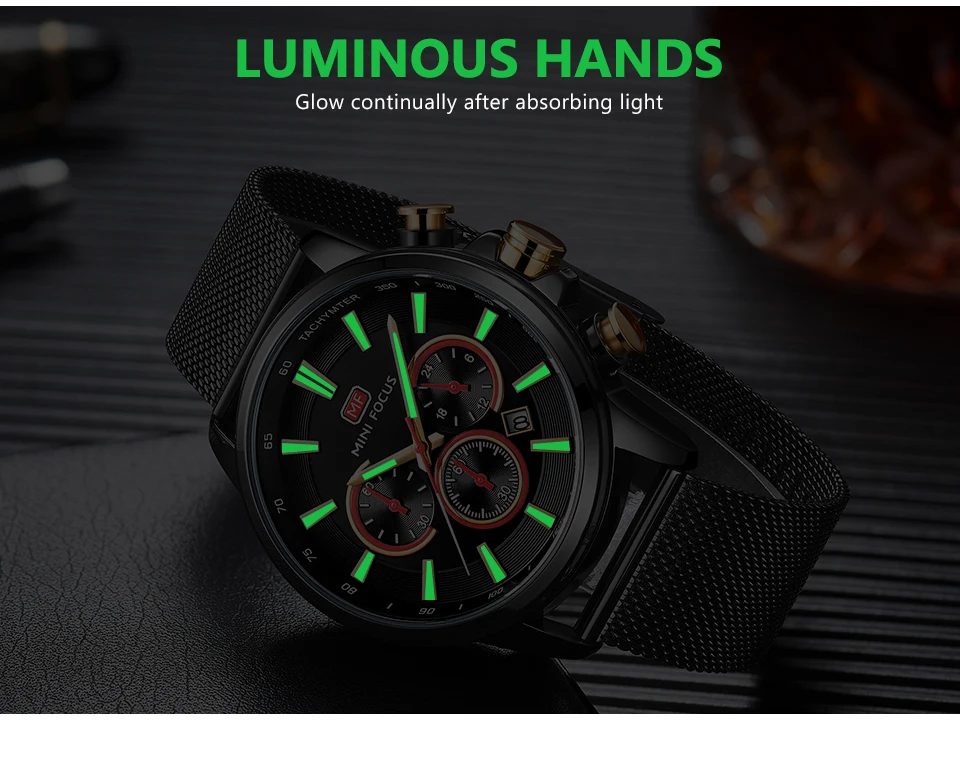 MINI FOCUS Black Watch Men Sports Watches Stainless Steel Luminous Chronograph Mens Watches Top Brand Luxury Waterproof Quartz