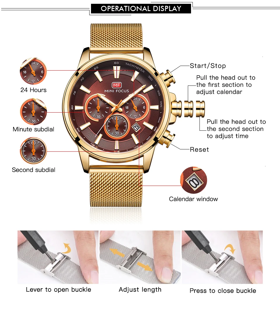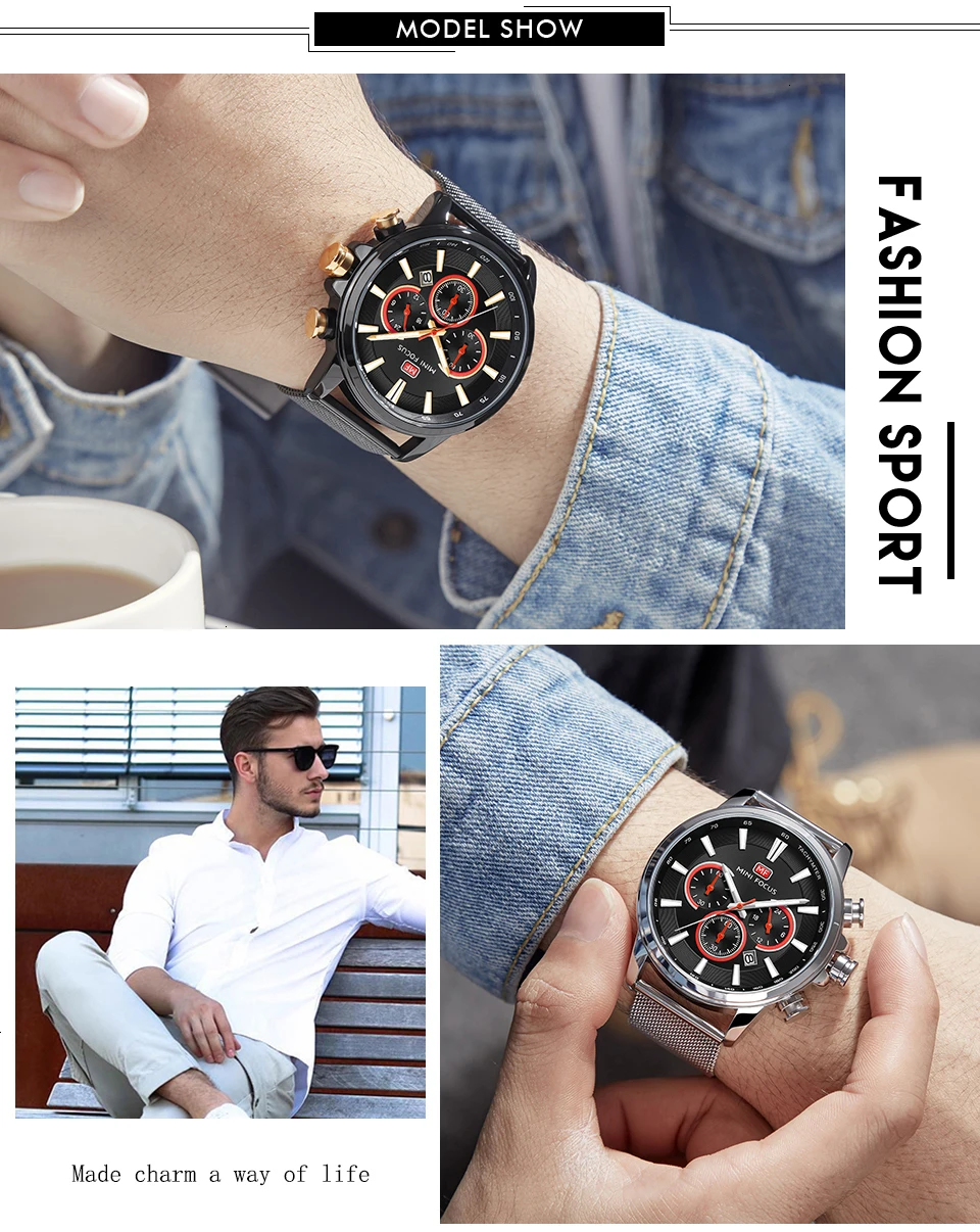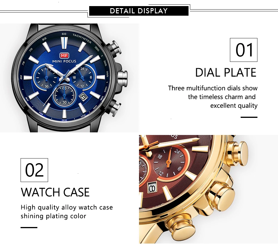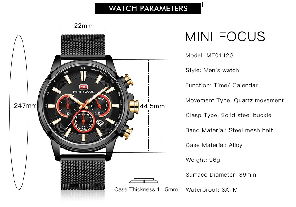 MINI FOCUS Black Watch Men Sports Watches Stainless Steel Luminous Chronograph Mens Watches Top Brand Luxury Waterproof Quartz