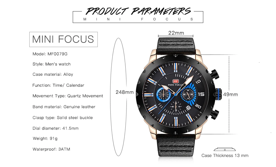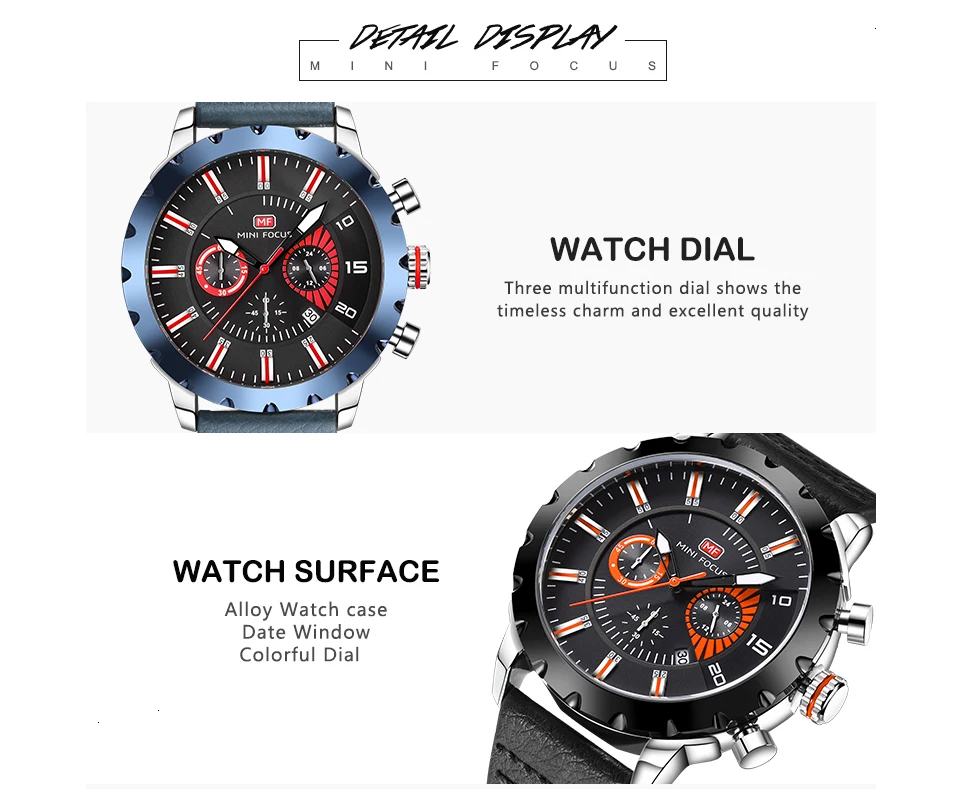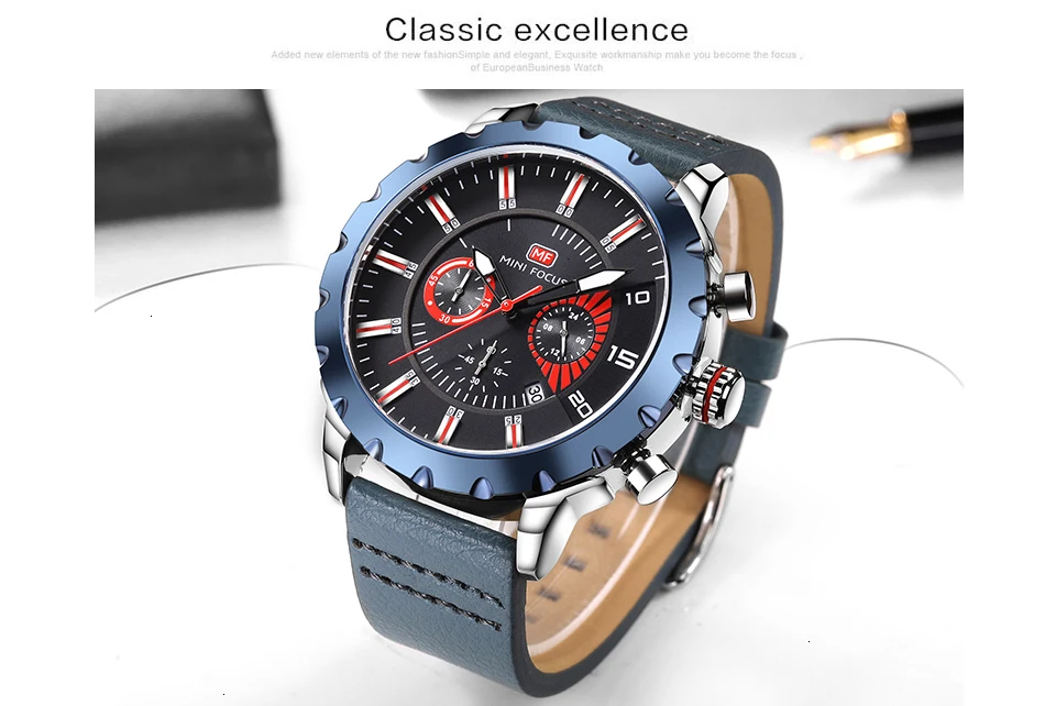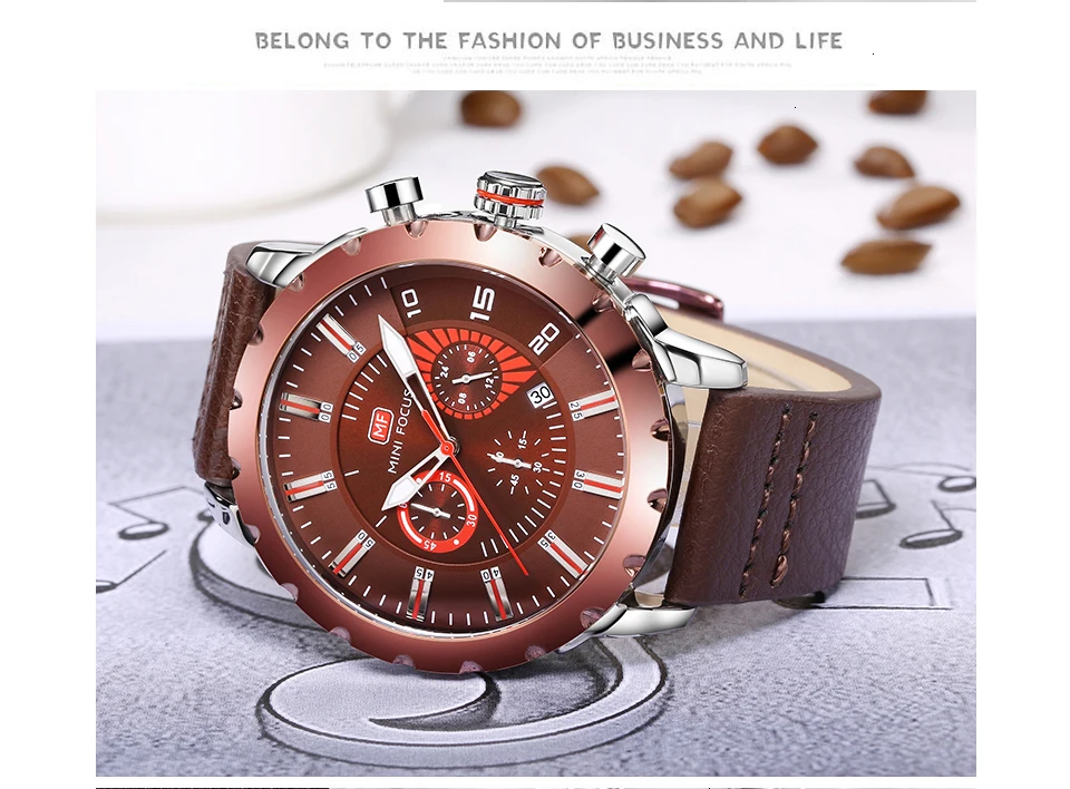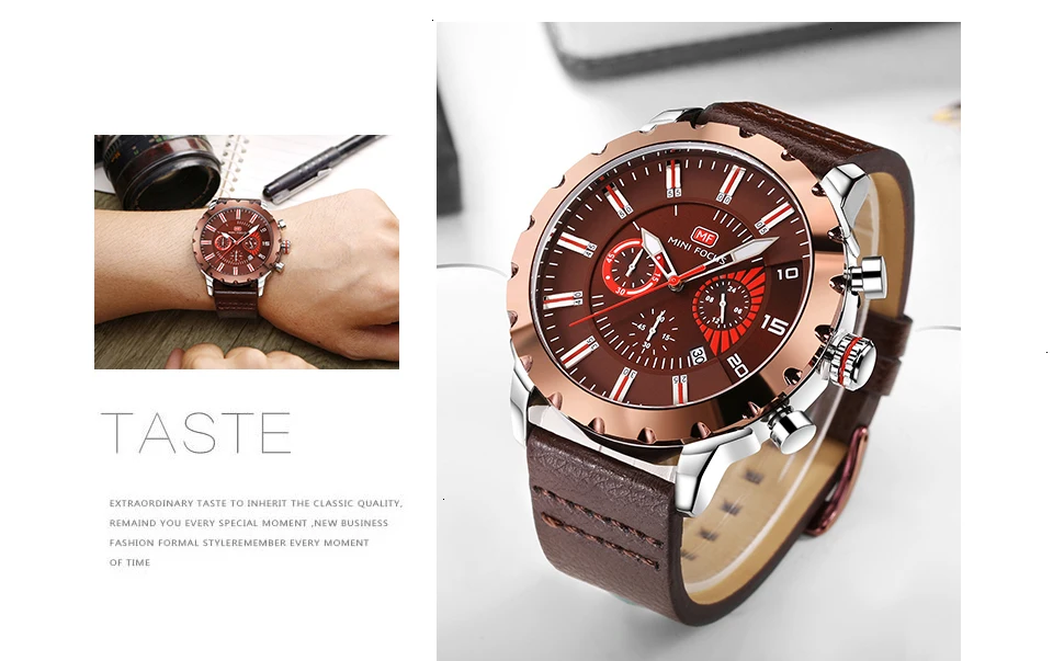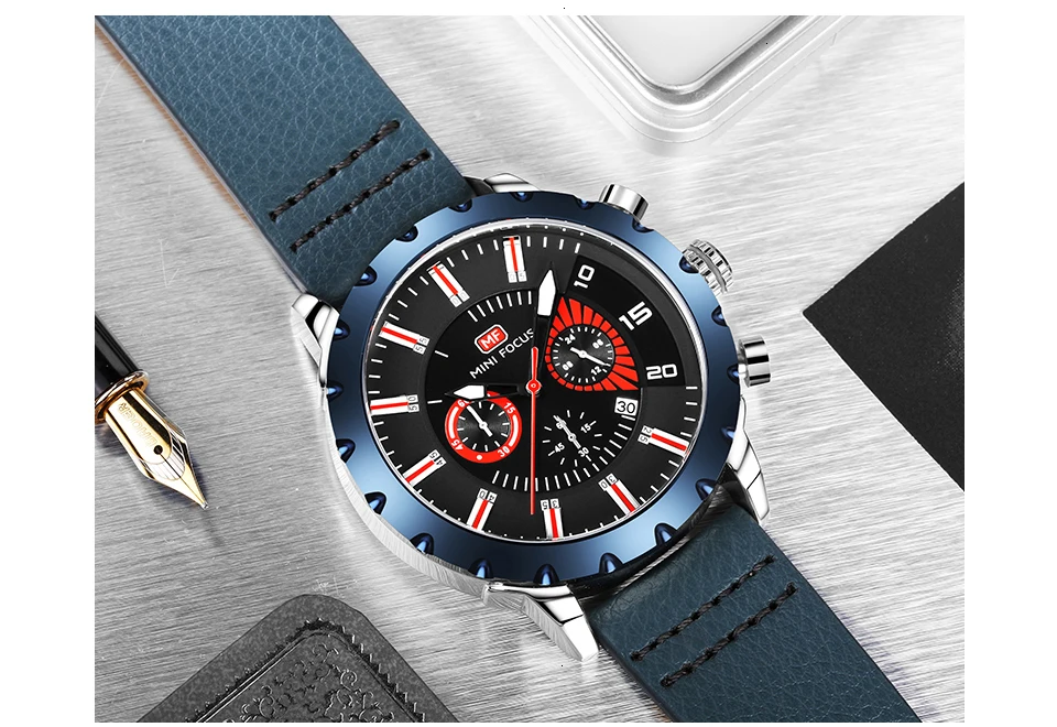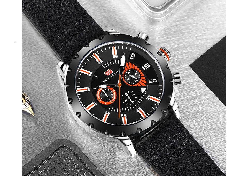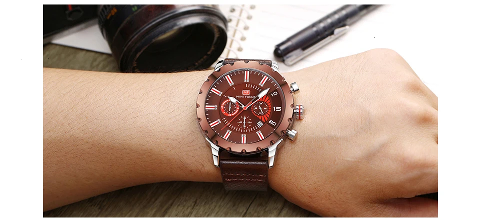 MINI FOCUS Famous Wristwatch Mens Watches Top Brand Luxury Male Clock Leather Quartz Watch Men Military Amry Relogio Masculino
