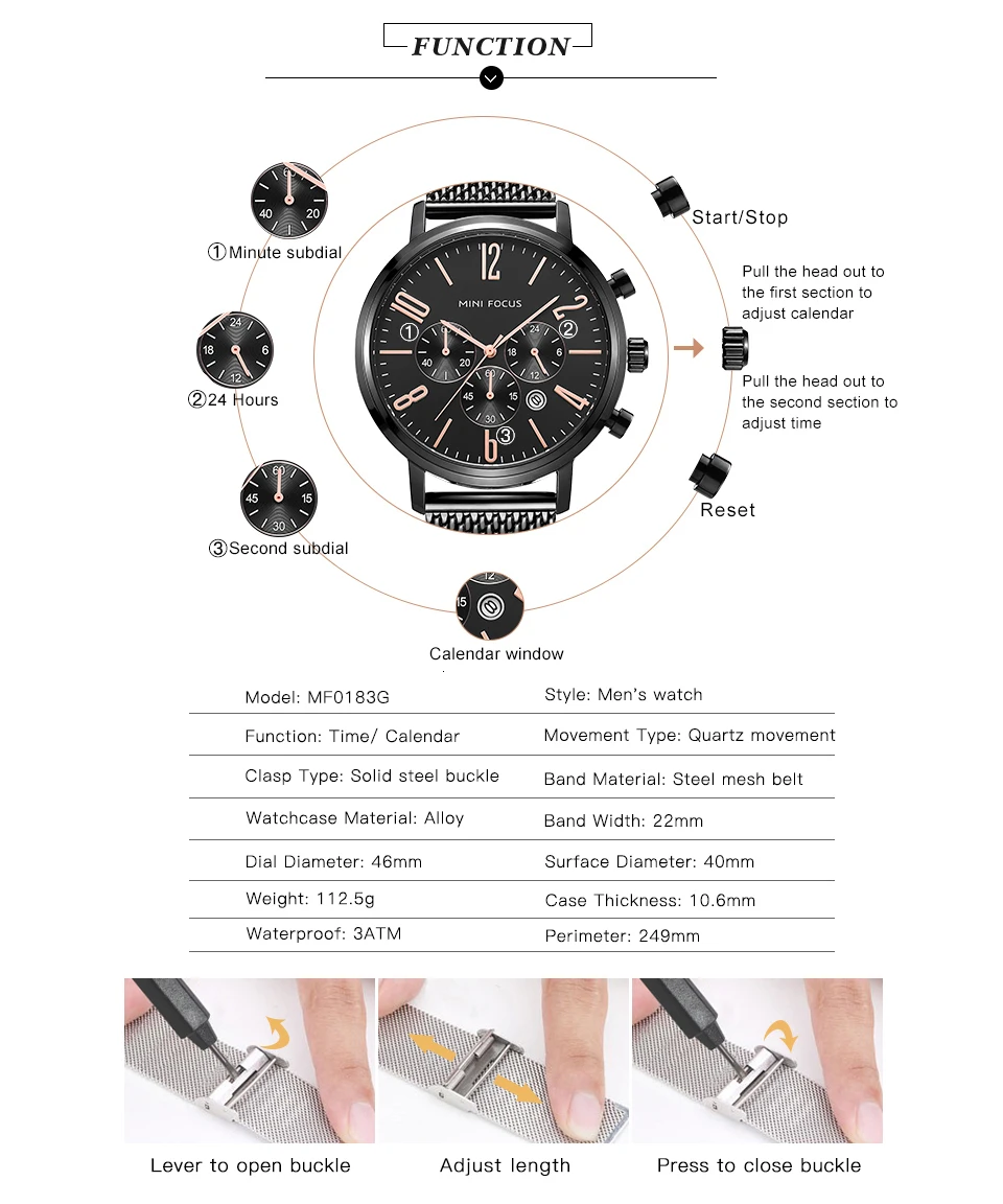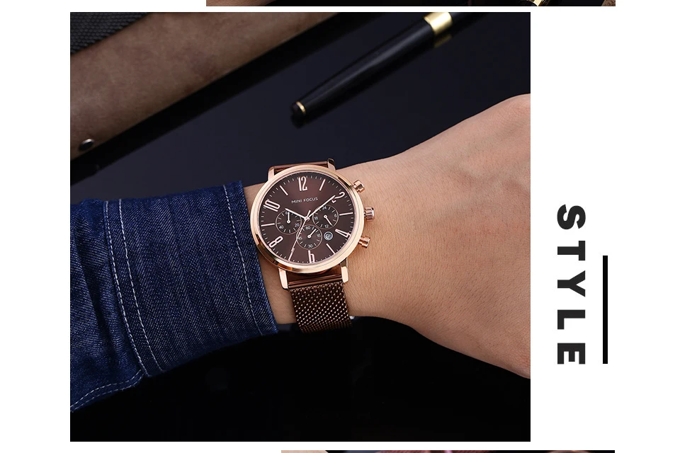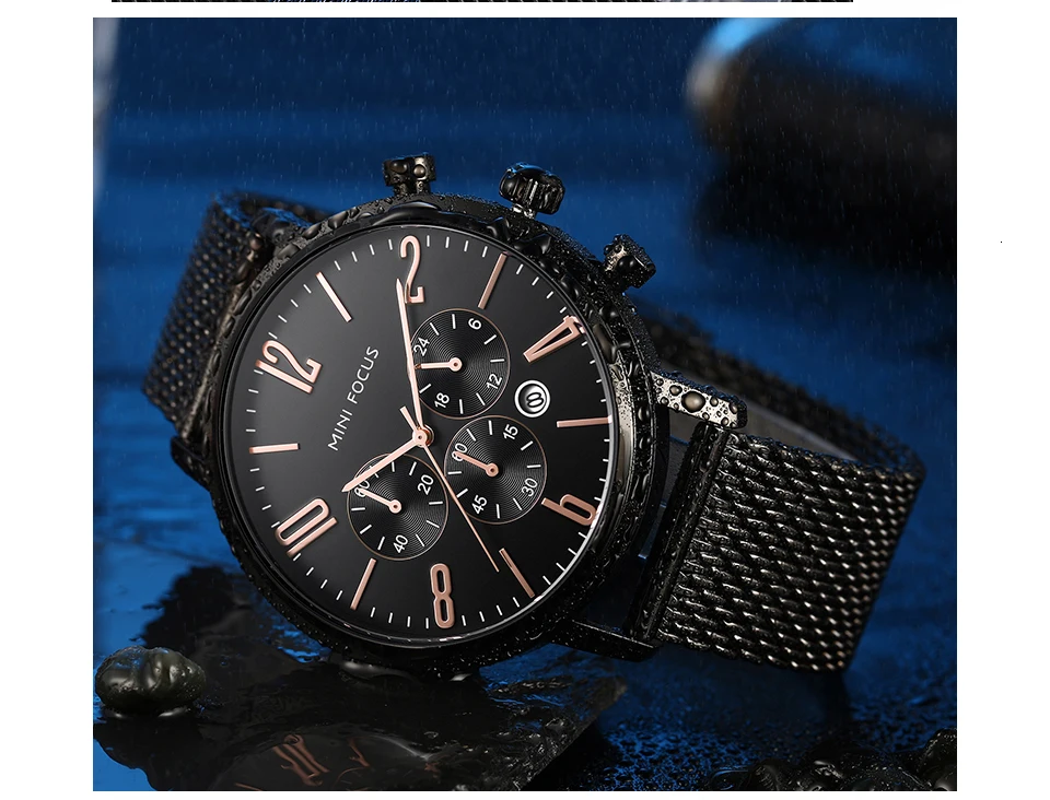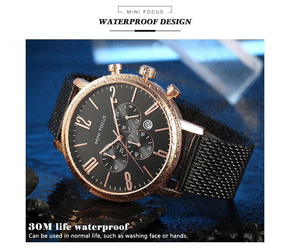 MINI FOCUS Fashion Sport Watches For Men Watch Waterproof Silver Stainless Steel Men's Wrist Watches Quartz Watches Luxury Brand