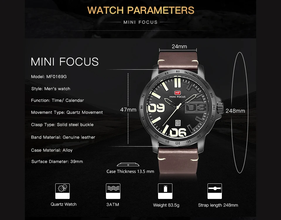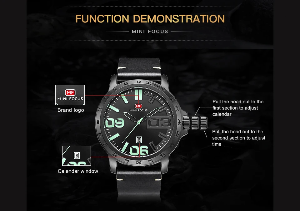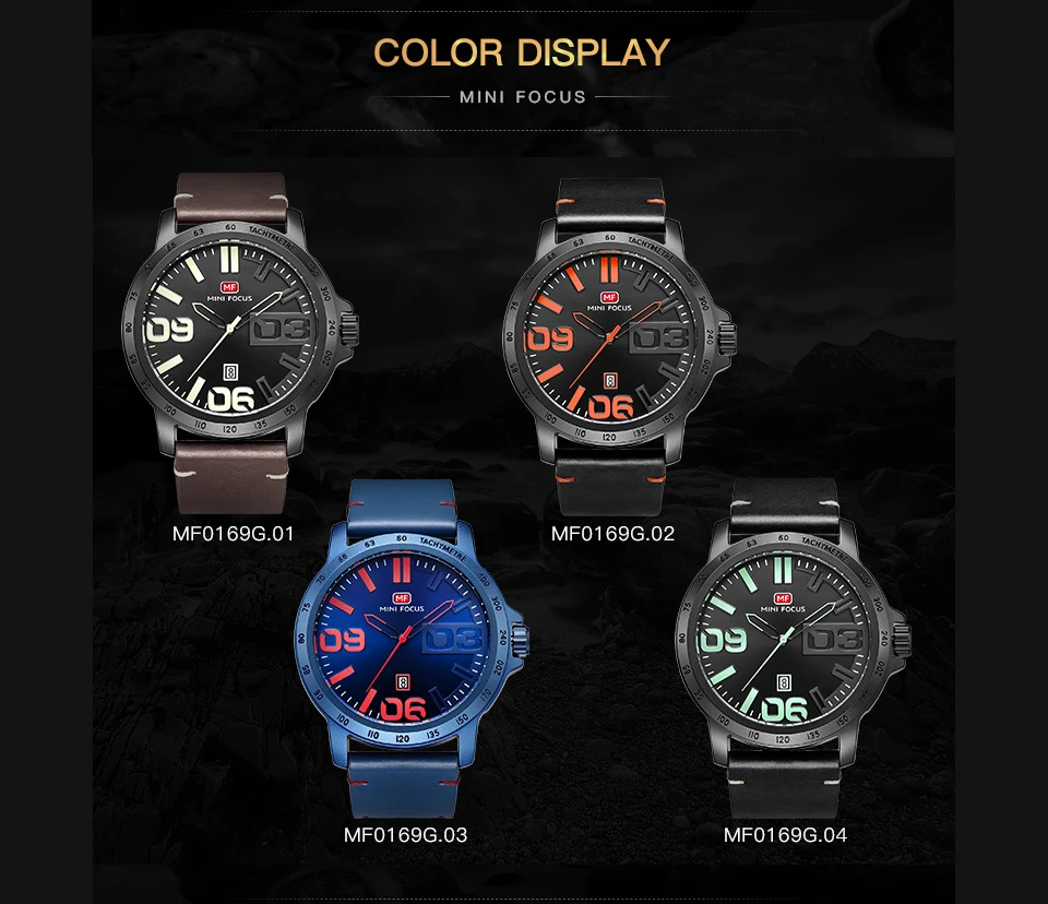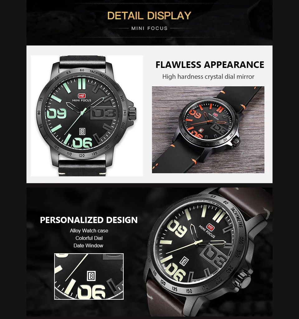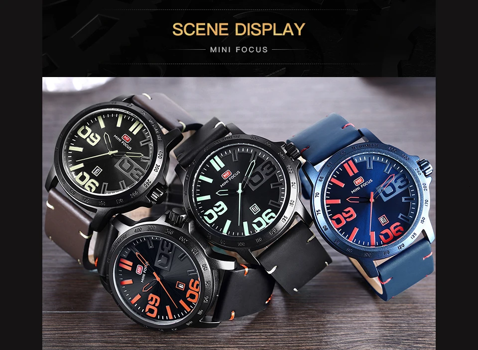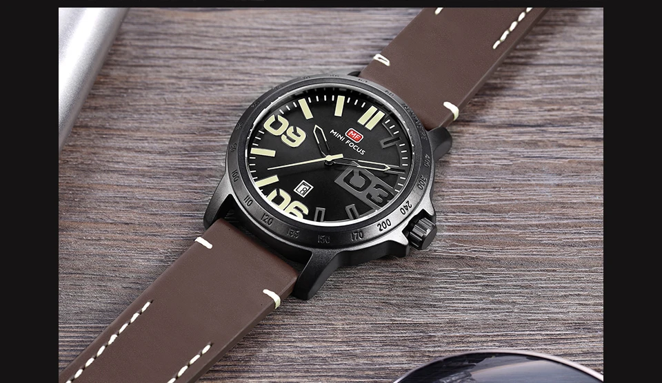 MINI FOCUS Luxury Brand Men Watches Leather Watch Strap Fashion Casual Dress Men's Wrist Watches Quartz Watch Men Waterproof