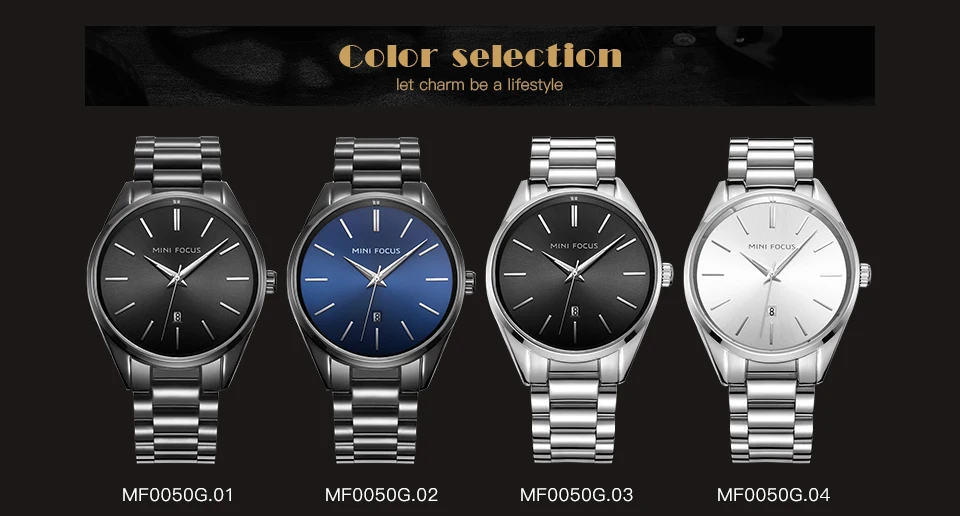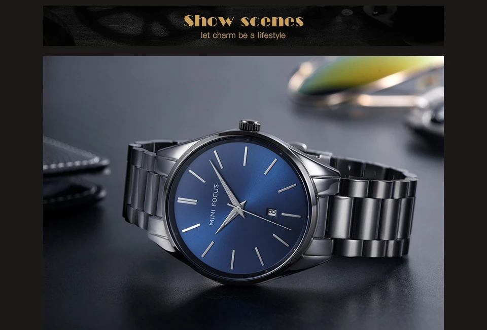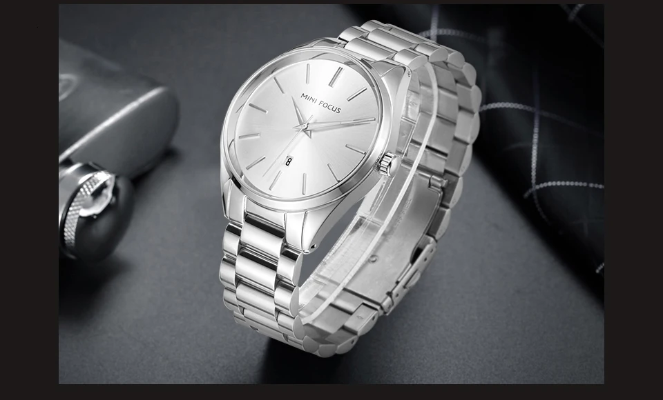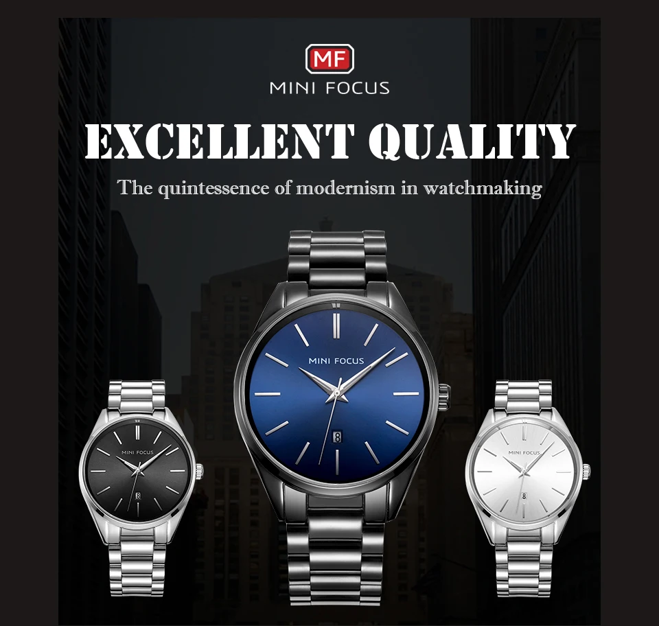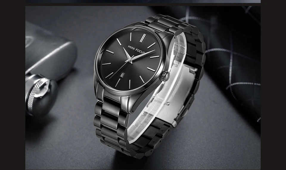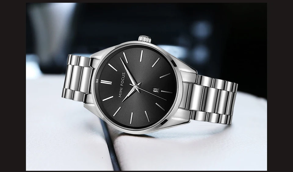 MINI FOCUS Luxury Brand Men Watches Stainless Steel Watch Men Waterproof Wristwatch Mens Quartz Fashion Black Blue Date Relogio
