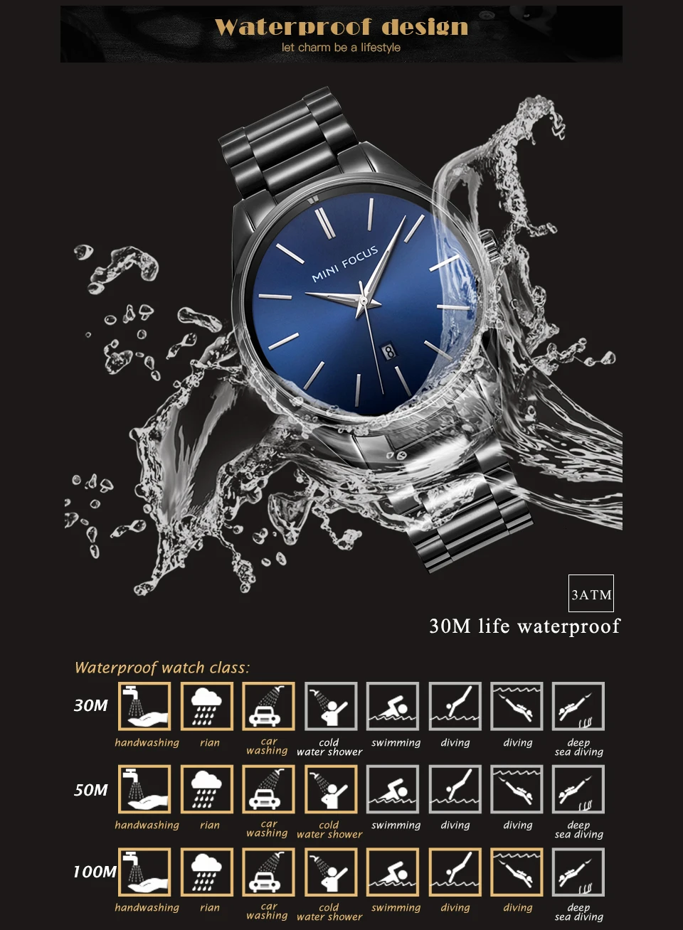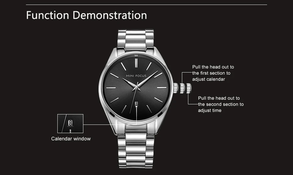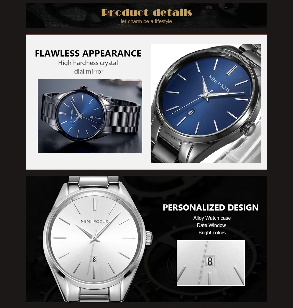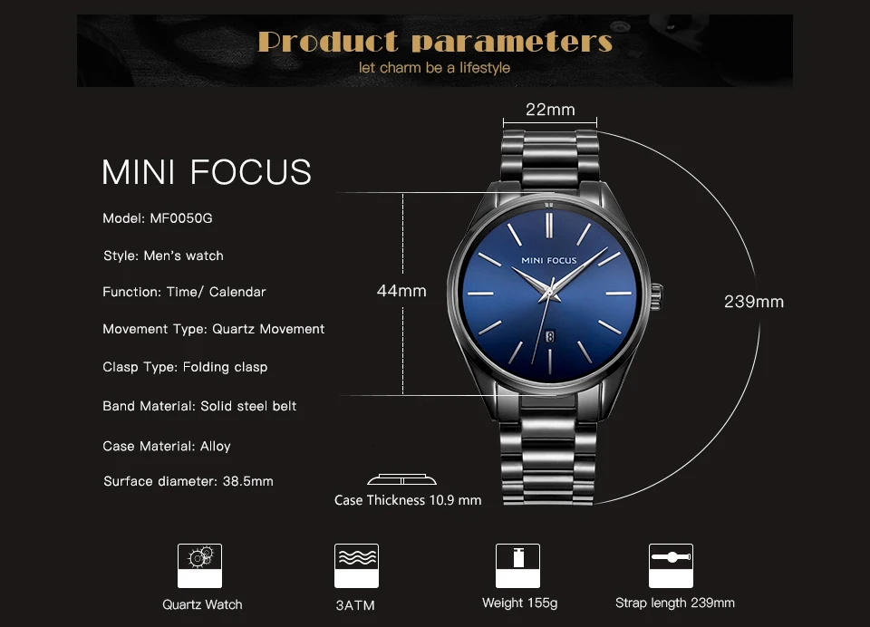 MINI FOCUS Luxury Brand Men Watches Stainless Steel Watch Men Waterproof Wristwatch Mens Quartz Fashion Black Blue Date Relogio