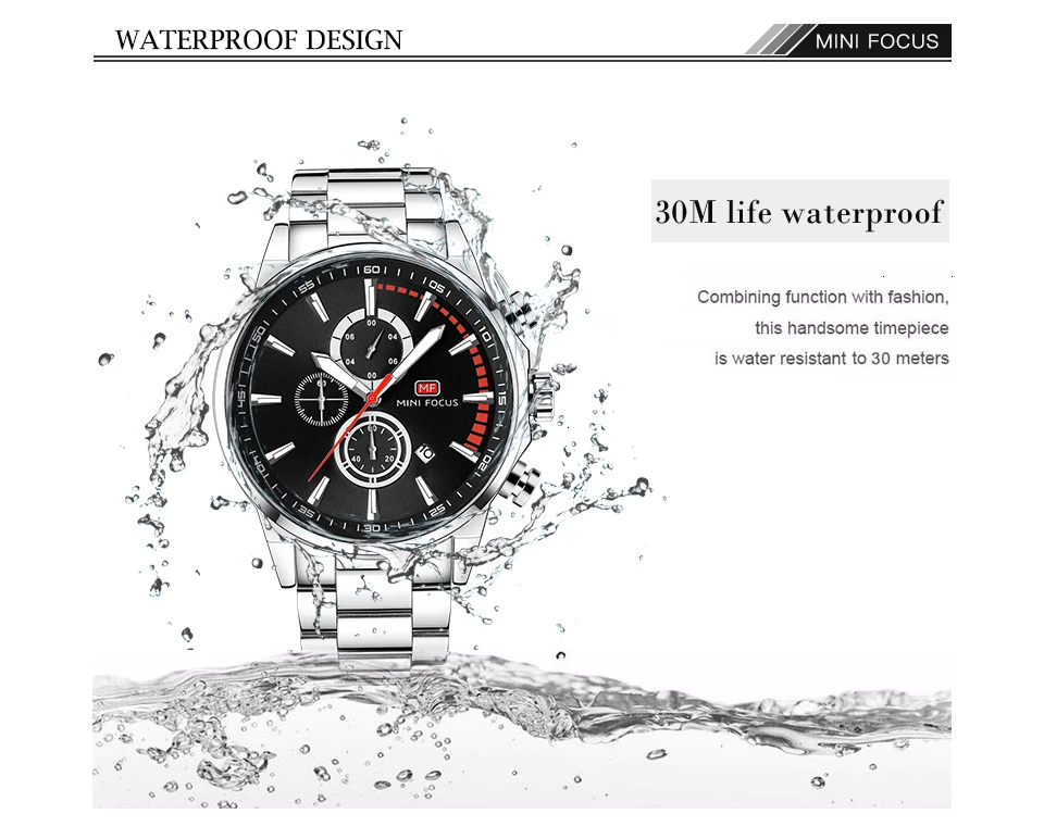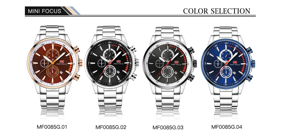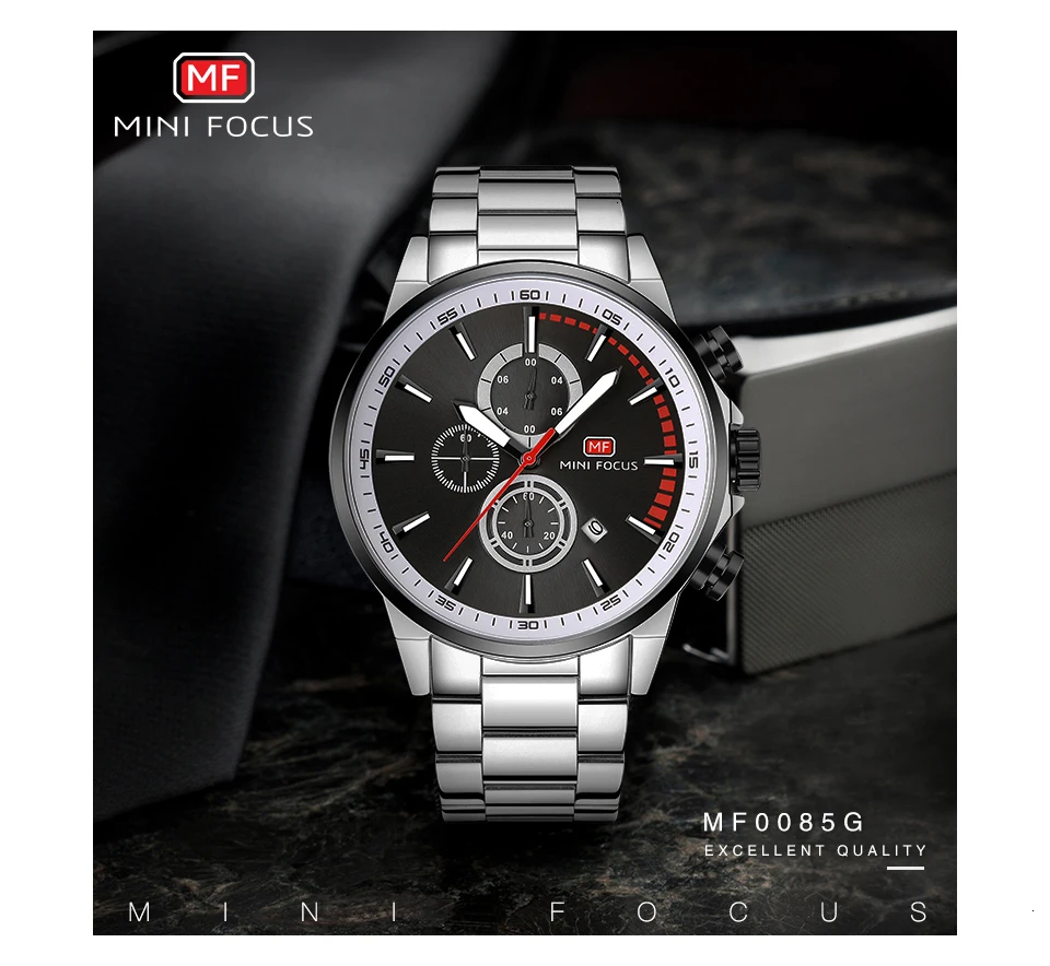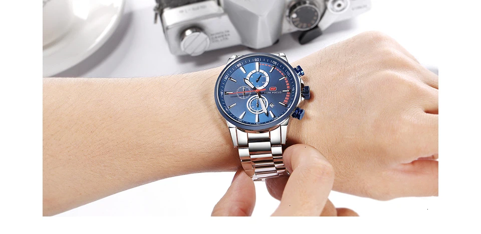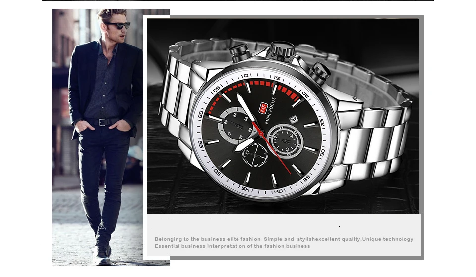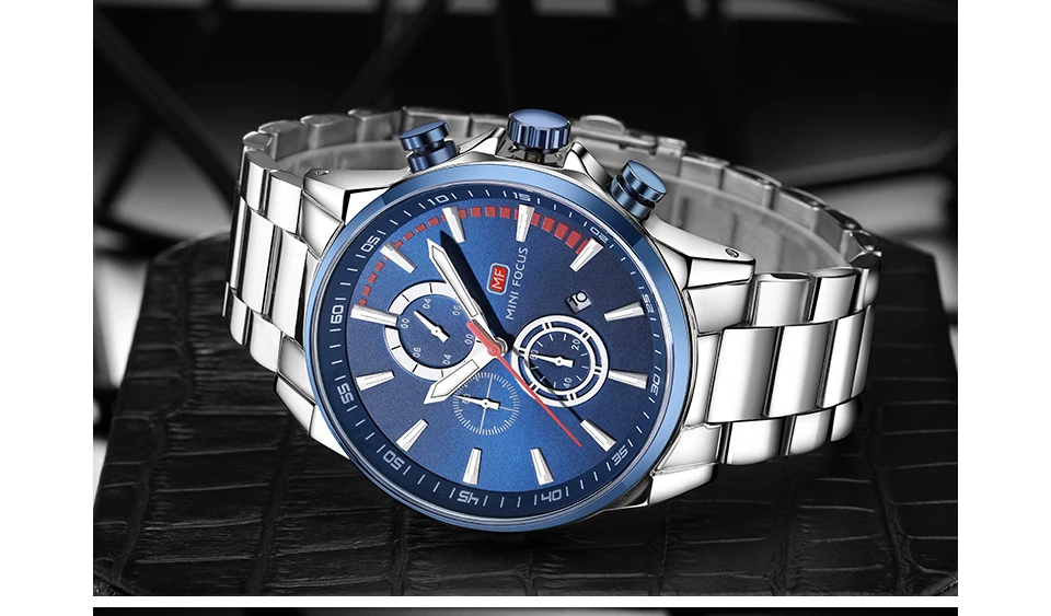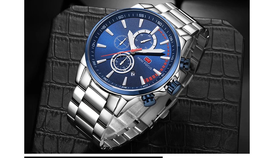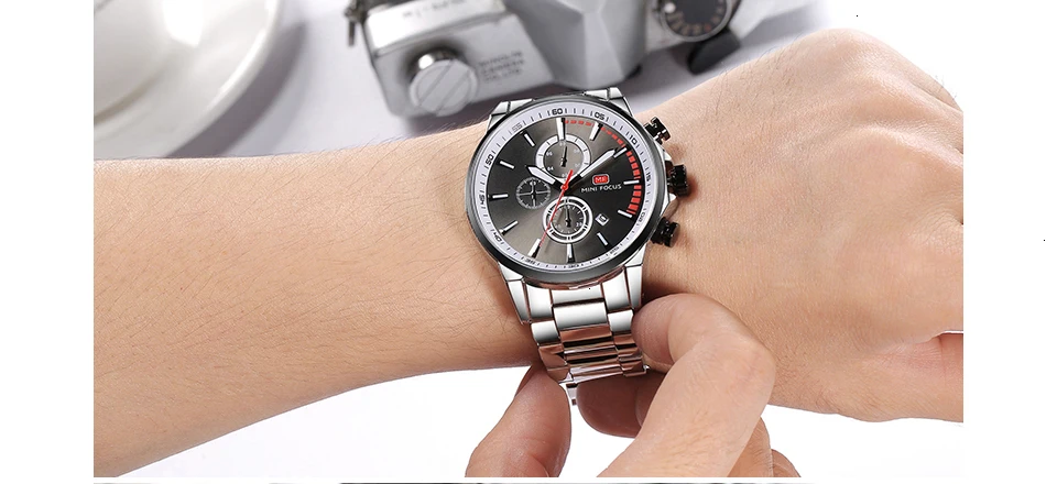 MINI FOCUS Men Watches Luxury Brand Stainless Steel Watch Mens Wristwatch Quartz Chronograph Sport Watch Men Waterproof Clock