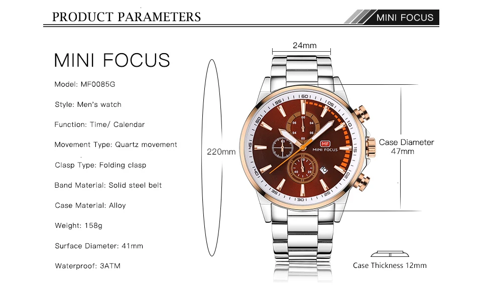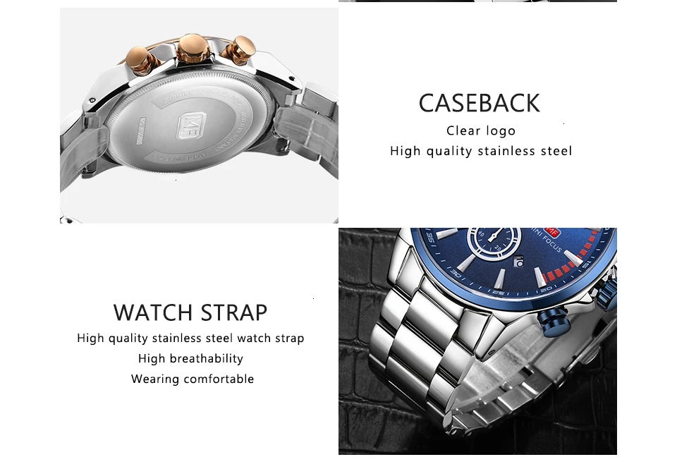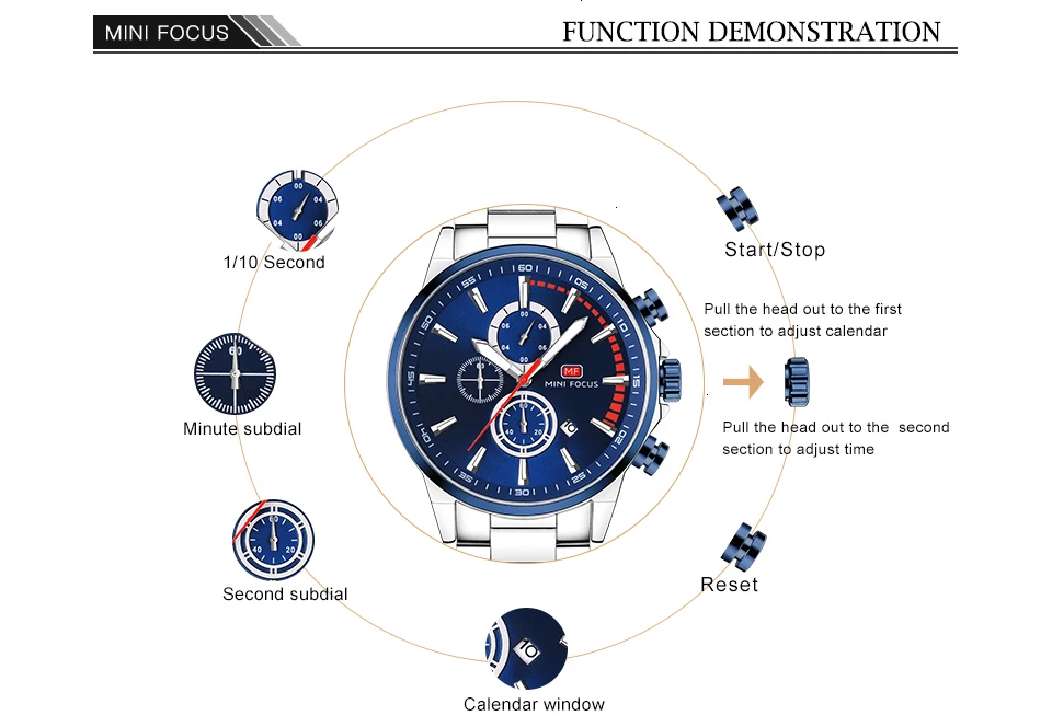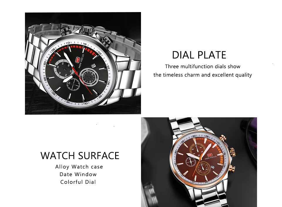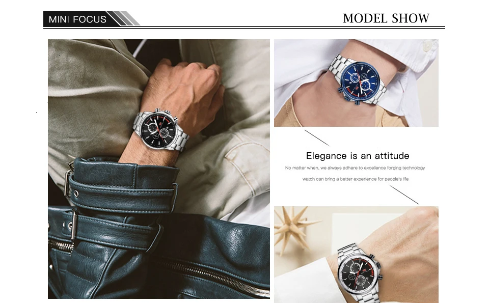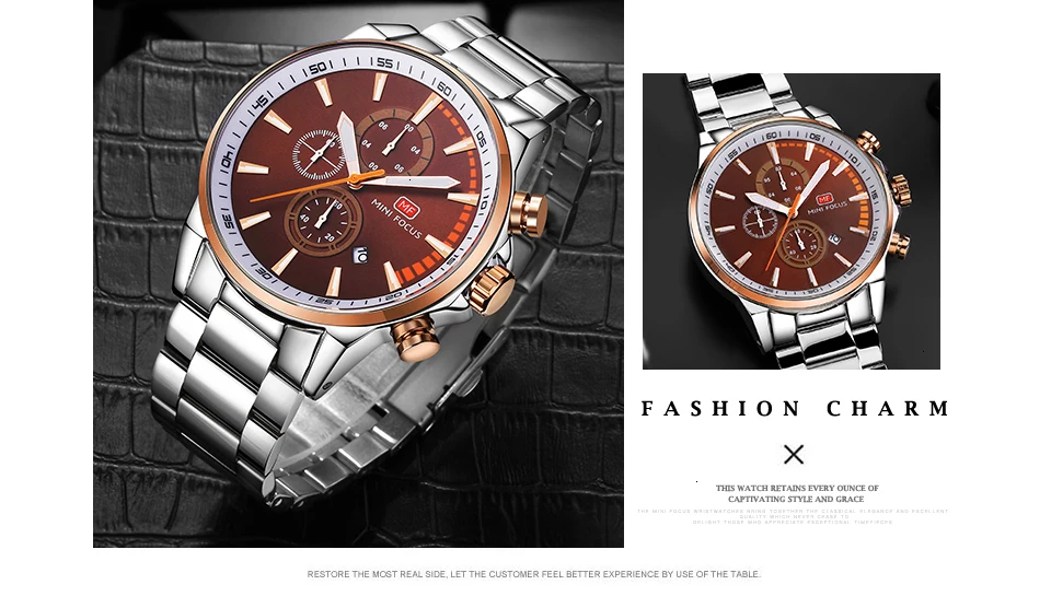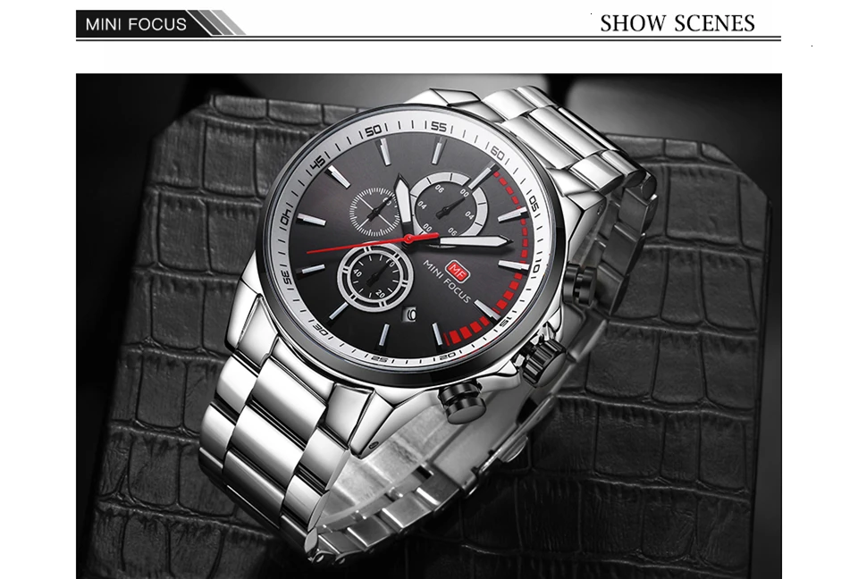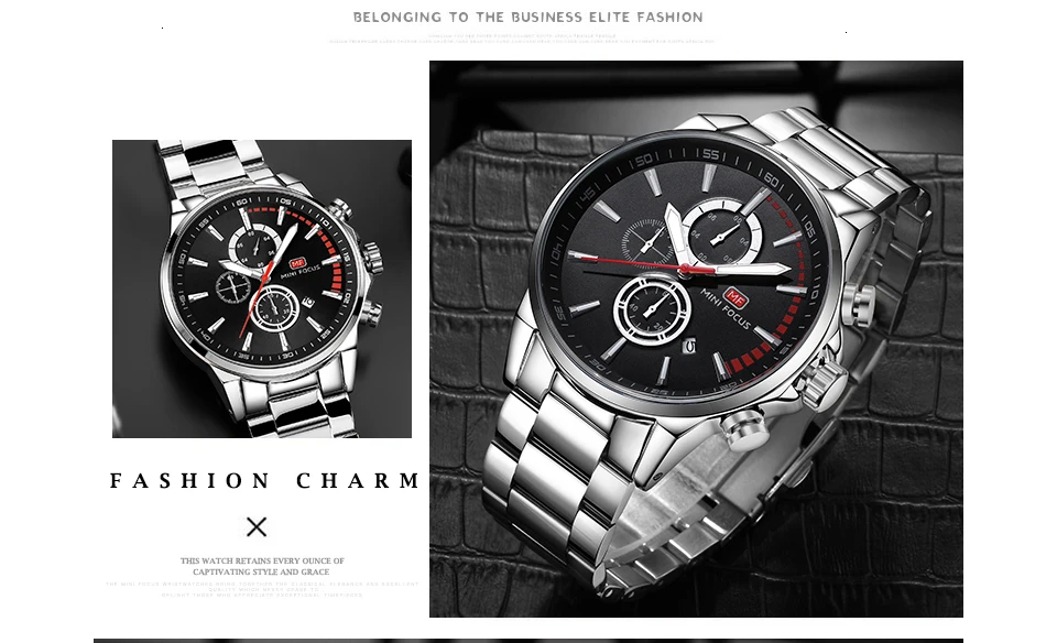 MINI FOCUS Men Watches Luxury Brand Stainless Steel Watch Mens Wristwatch Quartz Chronograph Sport Watch Men Waterproof Clock