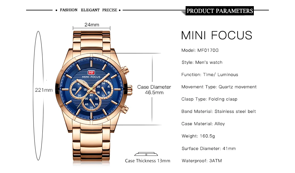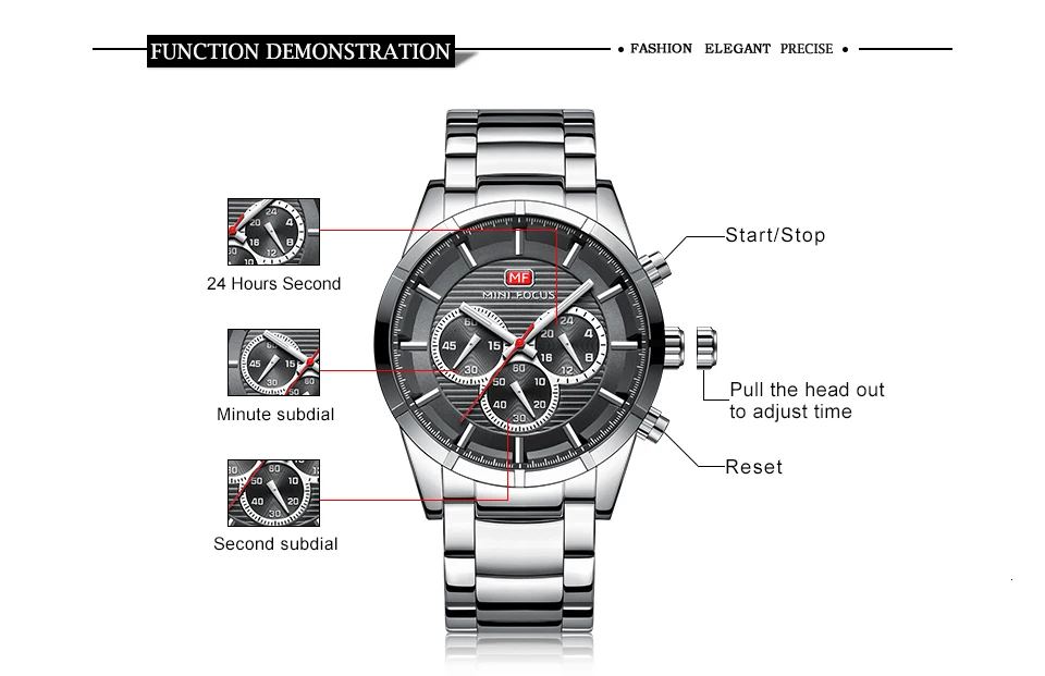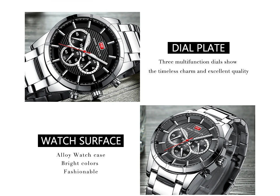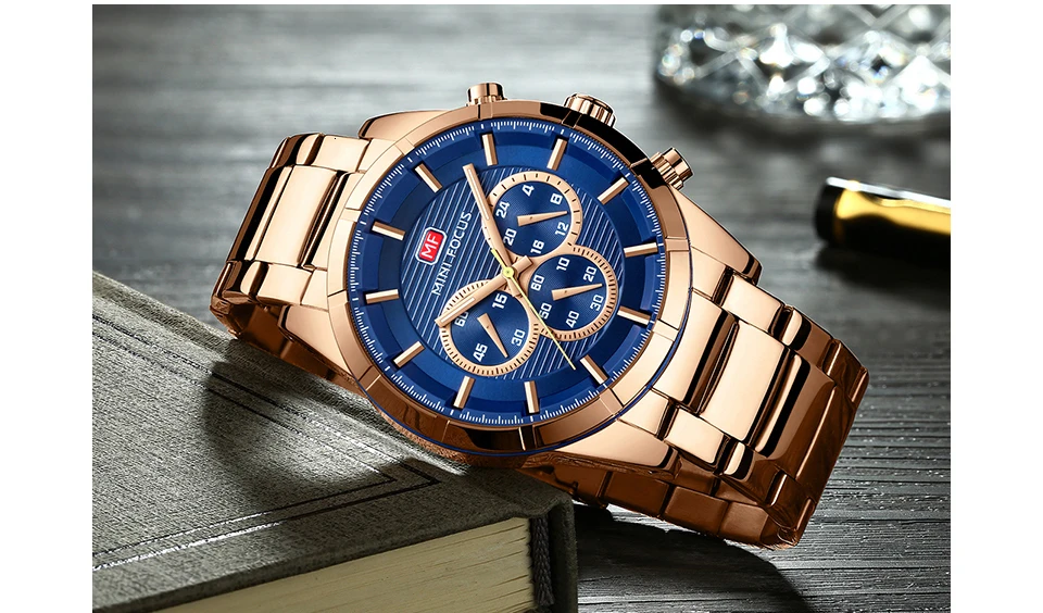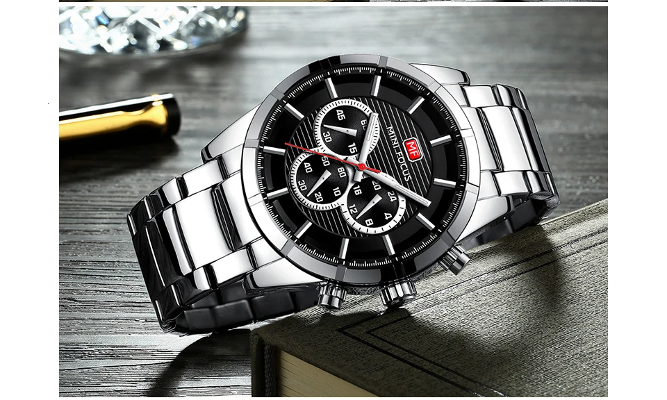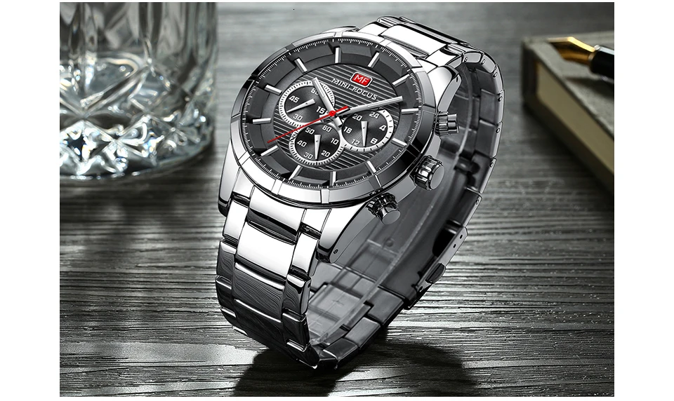 MINI FOCUS Mens Watches Top Brand Luxury Stainless Steel Quartz Watch Men Waterproof Sports Watches Man Clock Men's Wristwatches