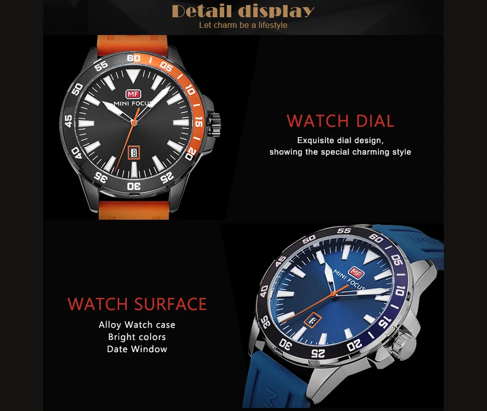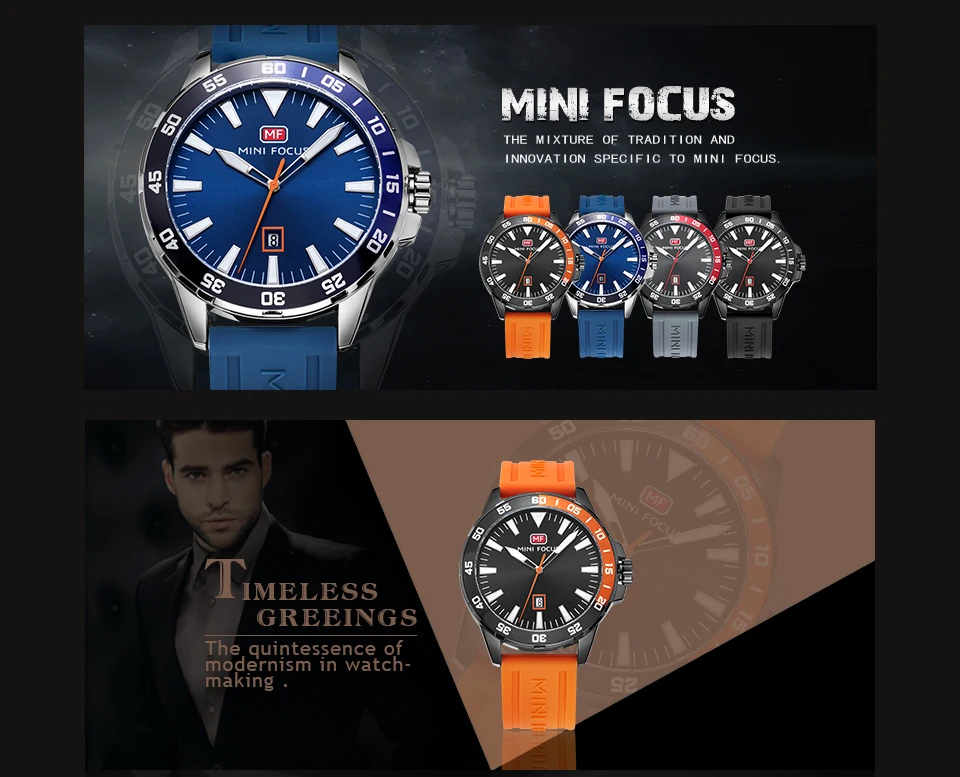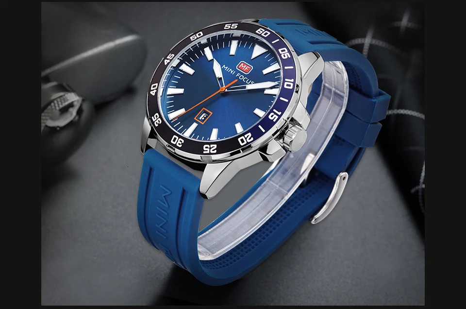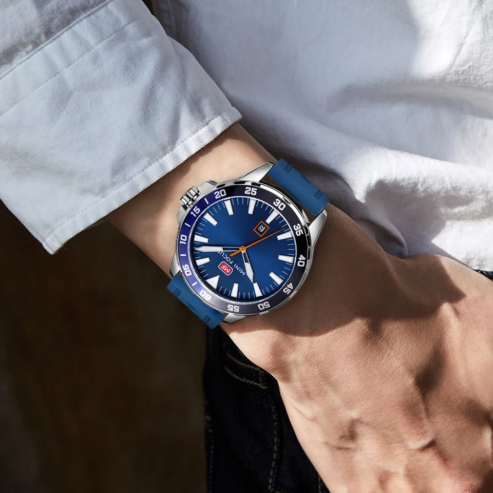 MINIFOCUS Army Military Watch Men Fashion Men's Watches Quartz Watches For Men Clock Luxury Brand Blue Rubber Strap Date Display