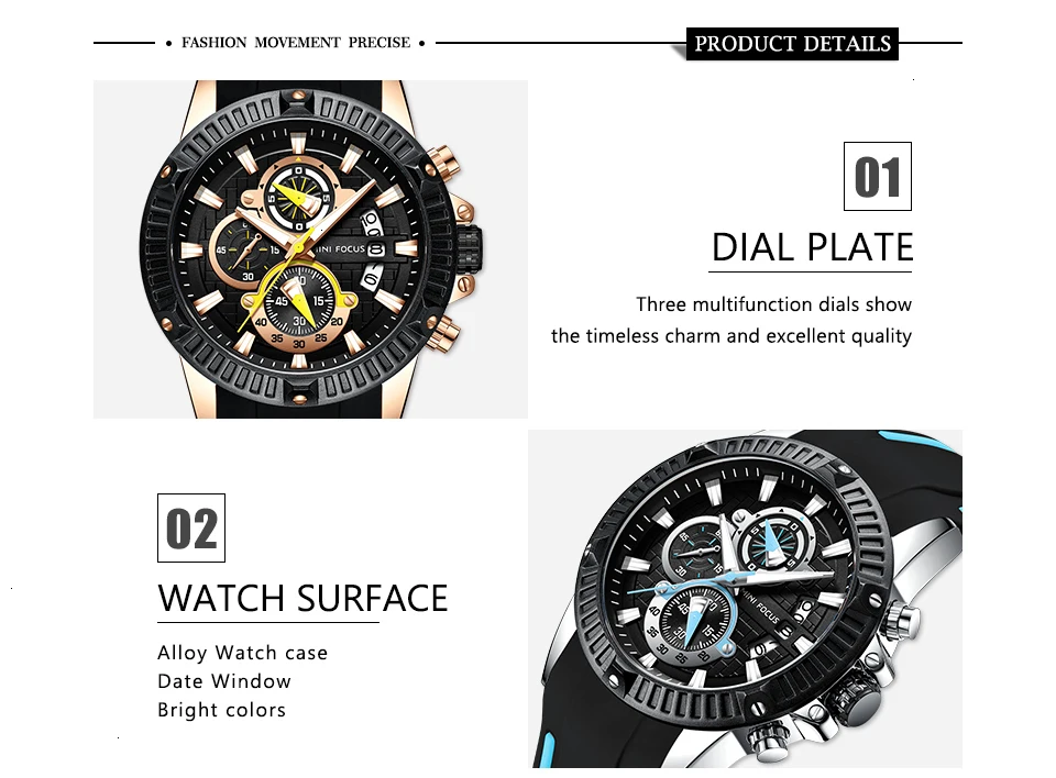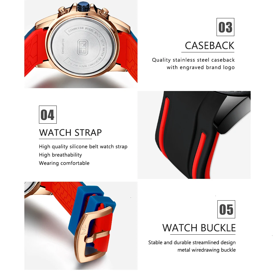 MINIFOCUS Fashion Sports Watch Men Waterproof Silicone Wrist Watches Men Luxury Brand Men's Watches Quartz Watches Male Clock