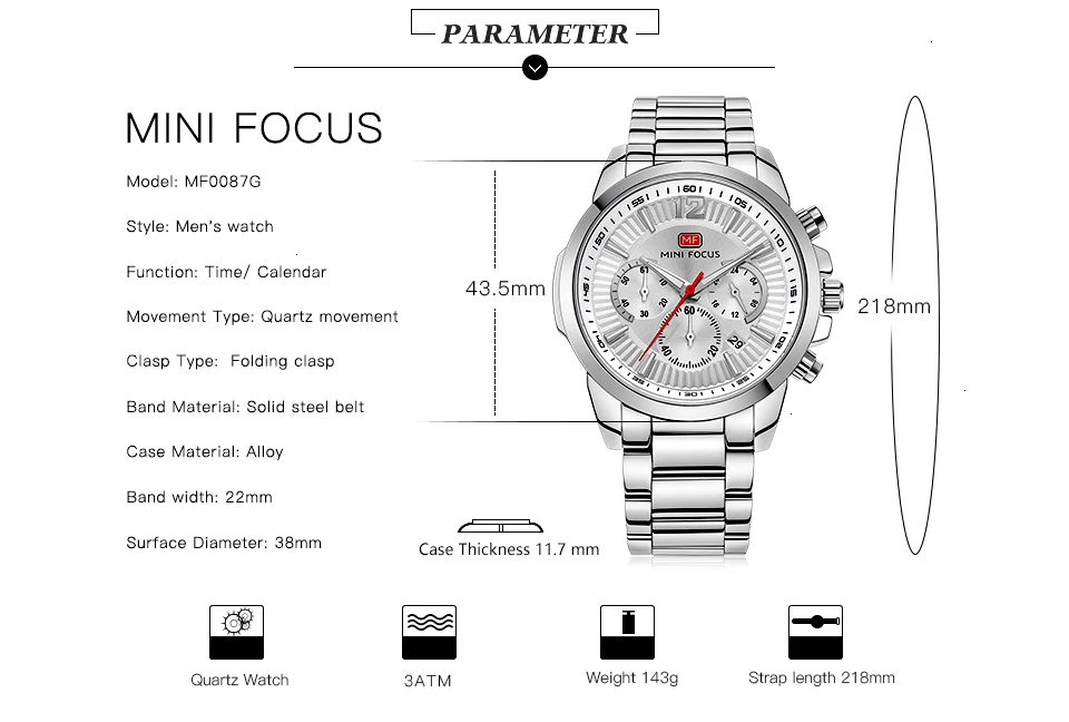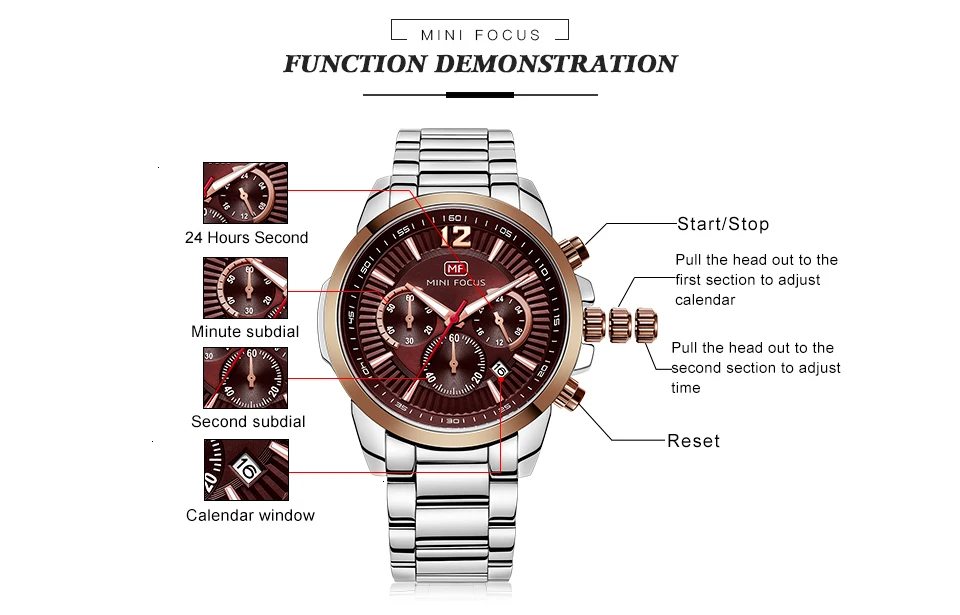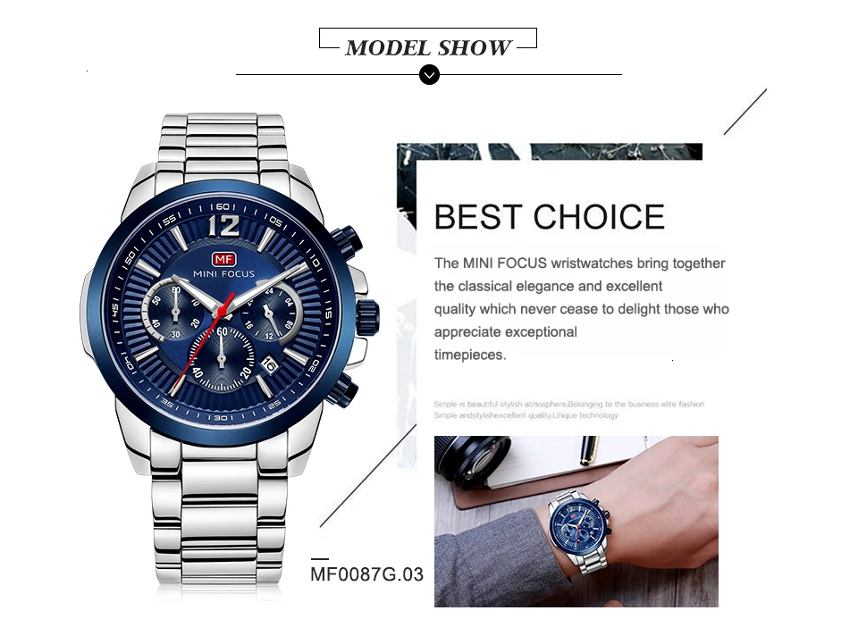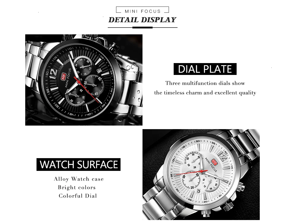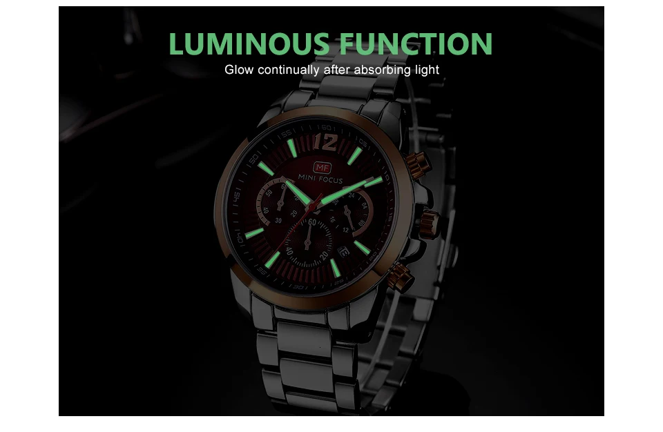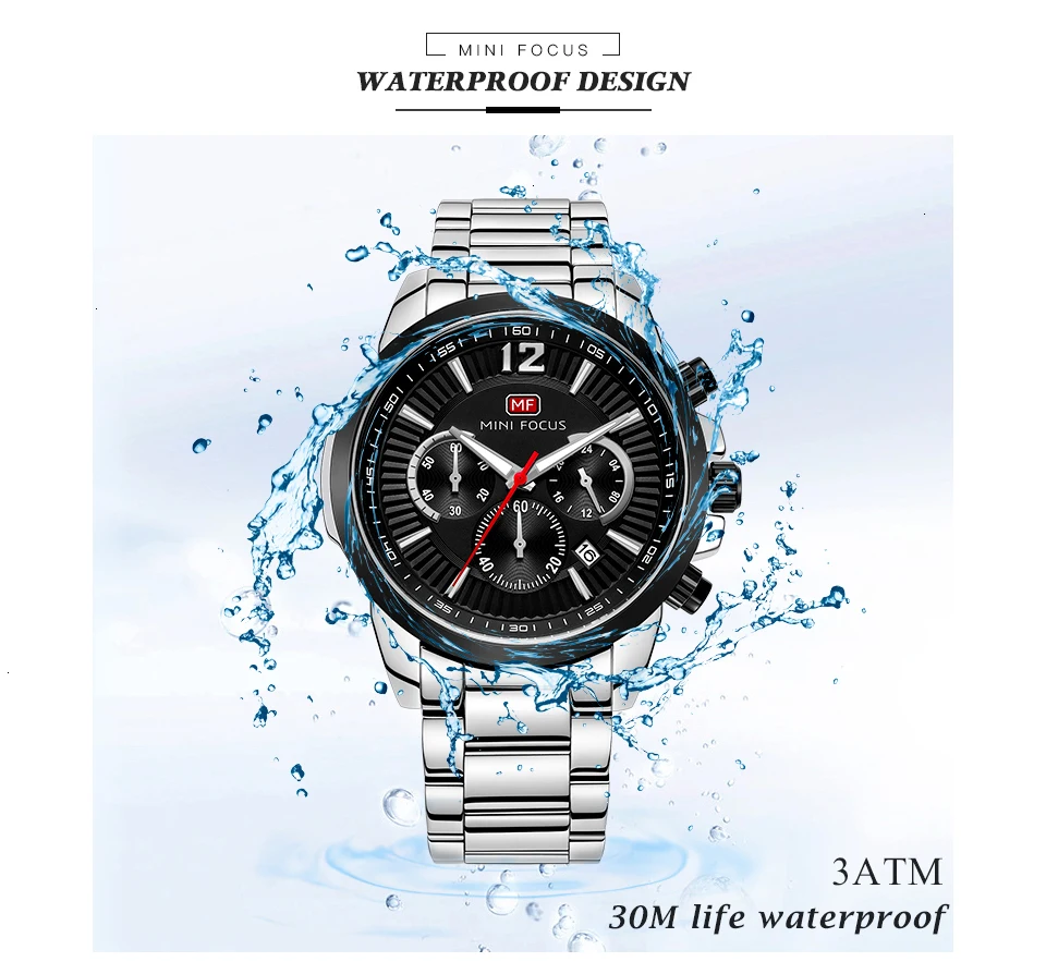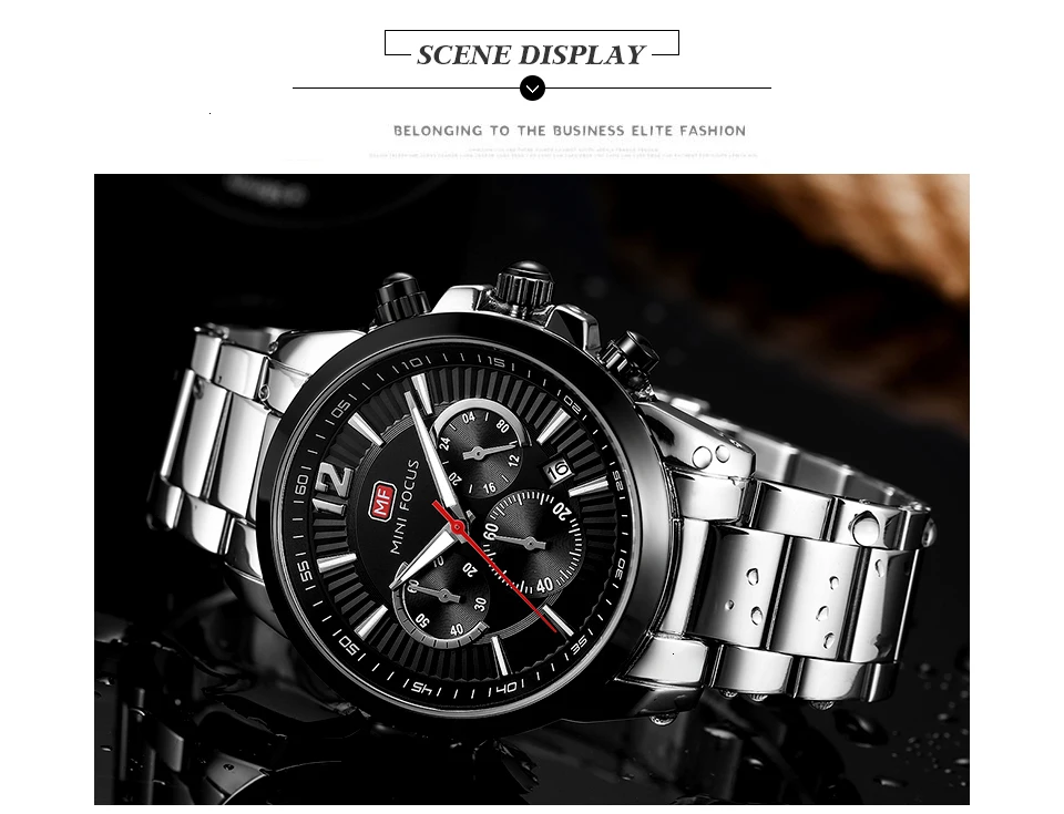 MINIFOCUS Men Watches Luxury Brand Stainless Steel Men's Watch Fashion Mens Watches Quartz Sport Watch Men Wristwatch Waterproof