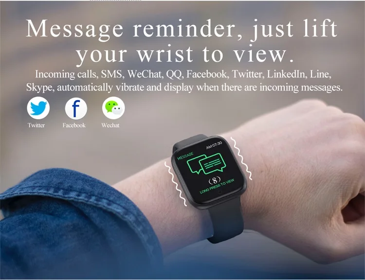 Incoming calls,SMS,Wechat,QQ,Facebook,Twitter,Linkedin,Line,Skype, Automatically vibrate and display when there are incoming messages.