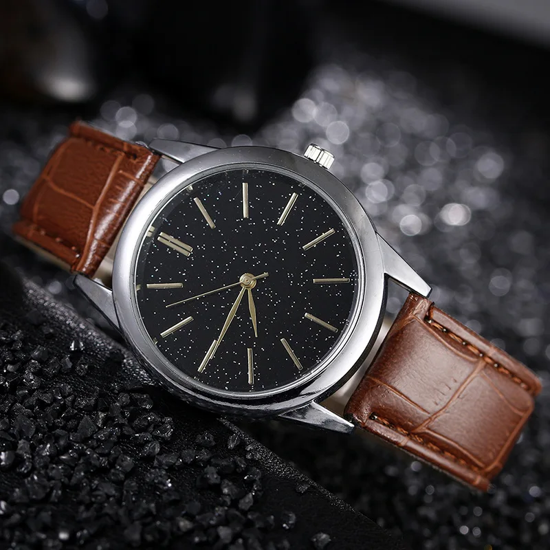 New Fashion Men's Watch Quartz Watches Luxury Men Watches Leather Strap Starry Dial Clock Relogio Masculino Reloj Hombre