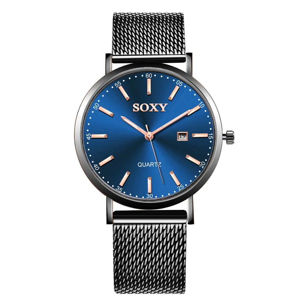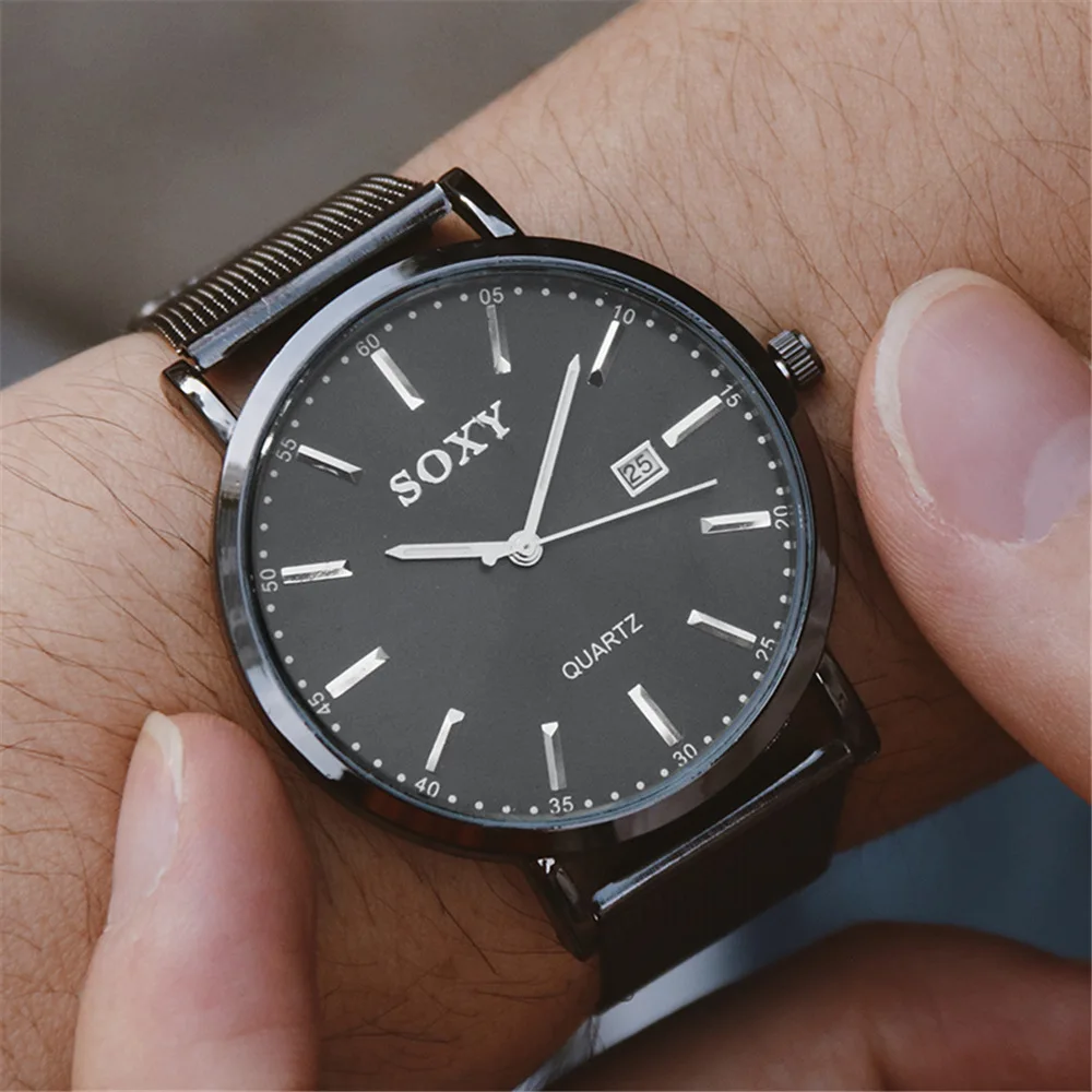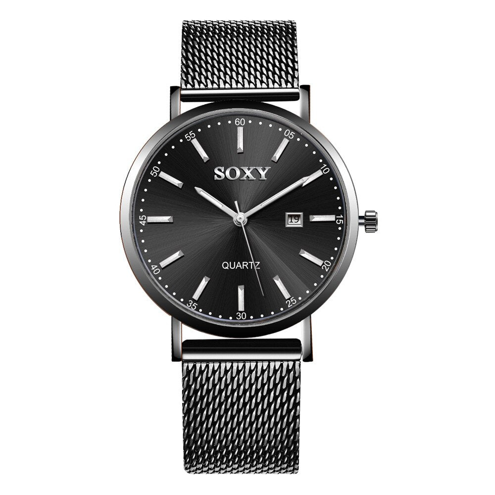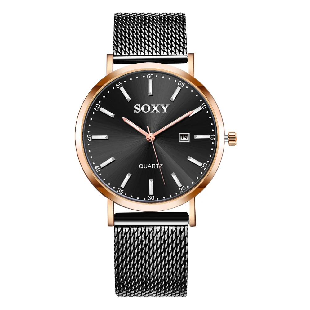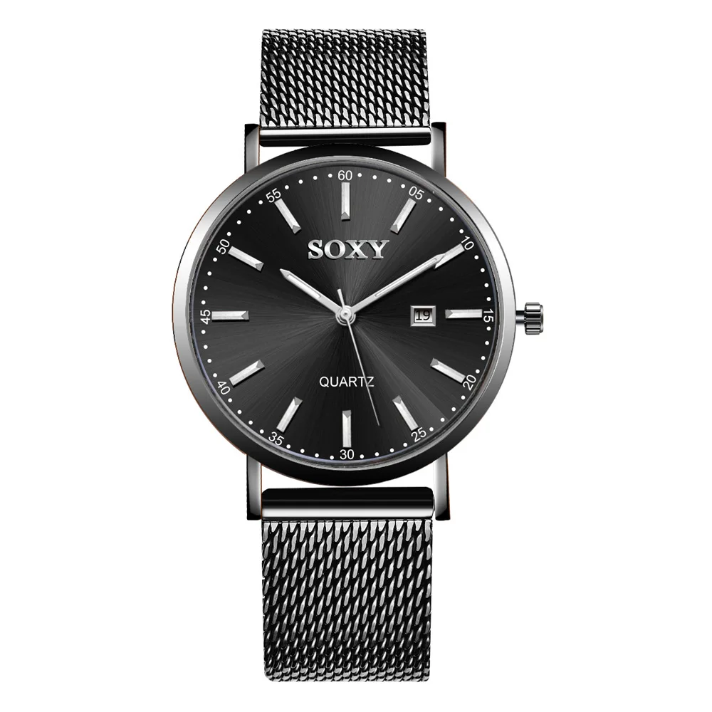 New SOXY Brand Men's Watch Quartz Watches Black Stainless Steel Strap Date Male Clock Relogio Masculino Erkek Kol Saati