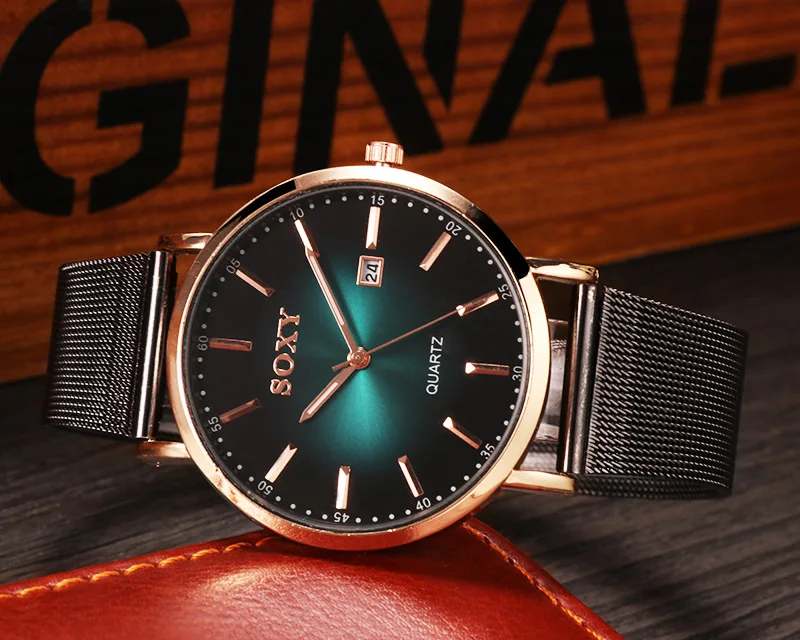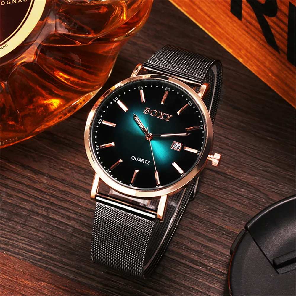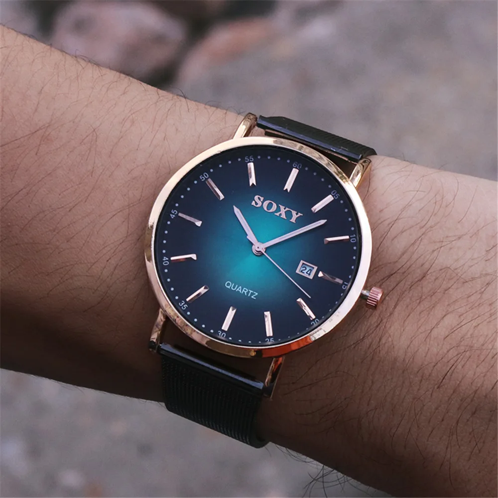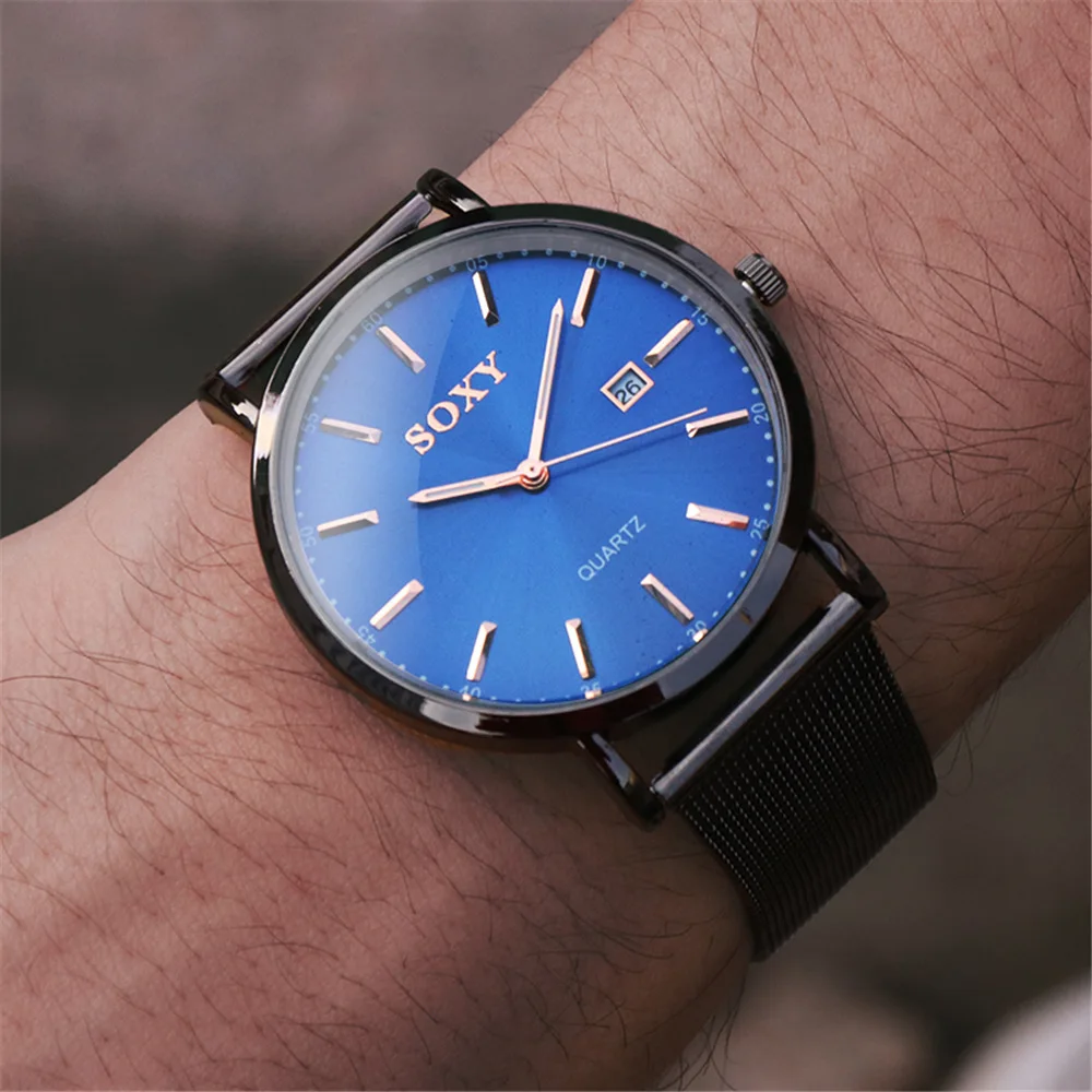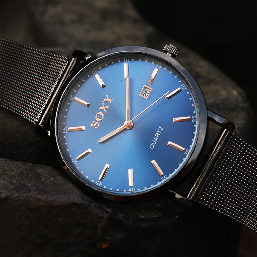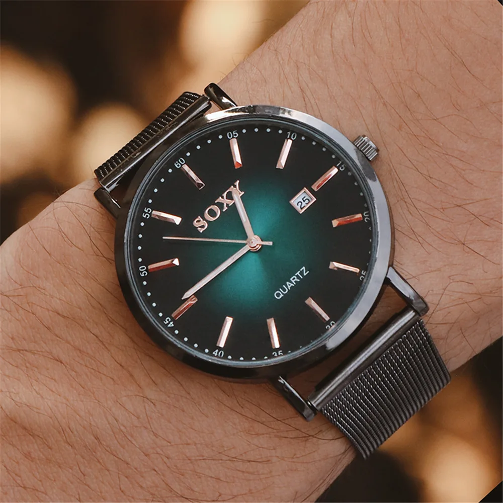 New SOXY Brand Men's Watch Quartz Watches Black Stainless Steel Strap Date Male Clock Relogio Masculino Erkek Kol Saati