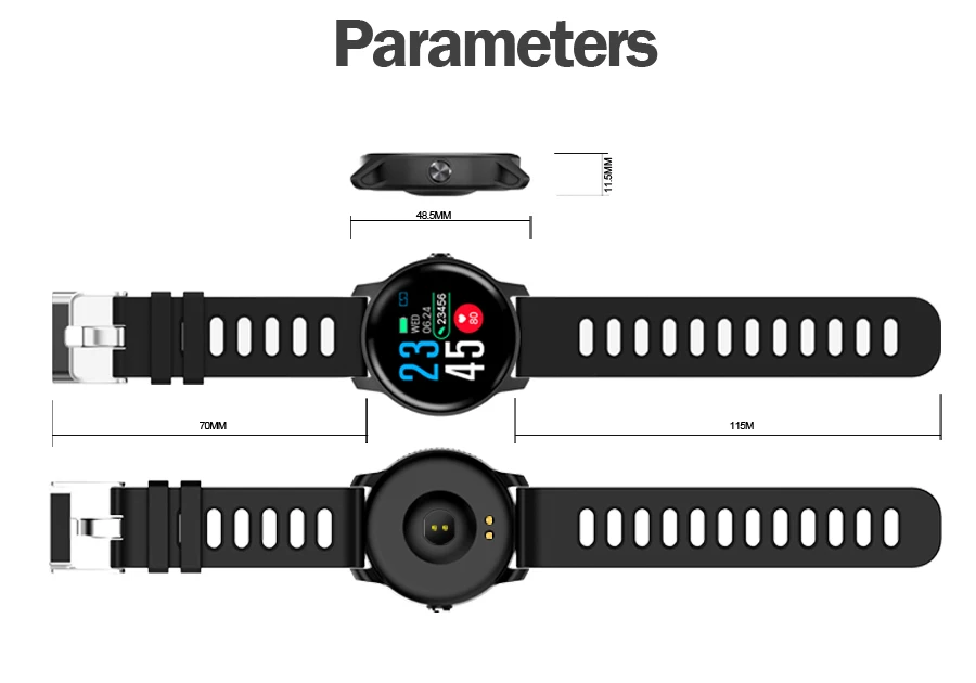 * More function: Music control, Motion records (step, mileage), sleep monitoring, sedentary reminder, calorie calculation, stopwatch, low battery alert, raising the bright screen, fast charging, low power consumption, vibration, exercise mode, remote camera, intelligent alarm