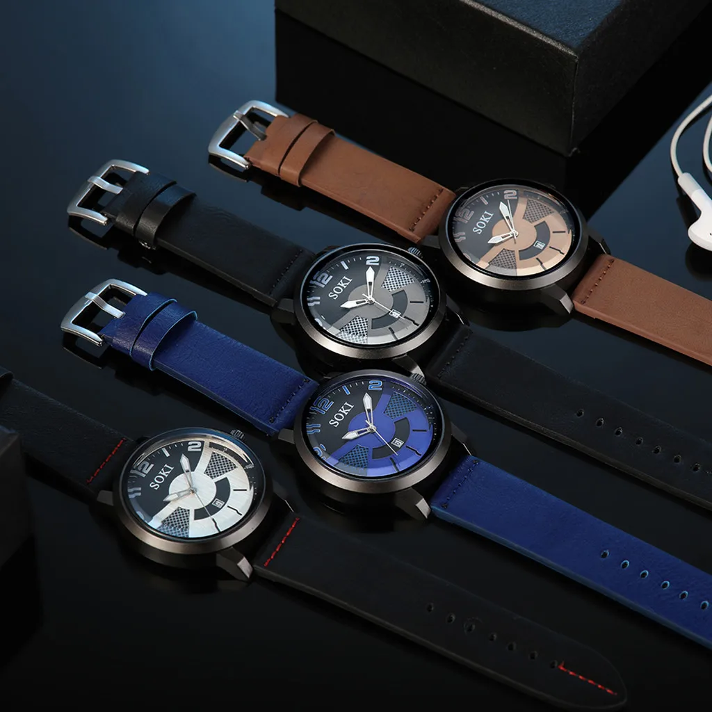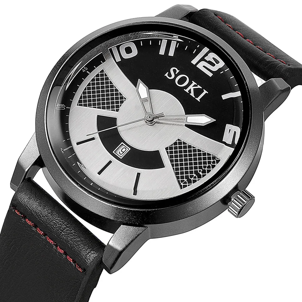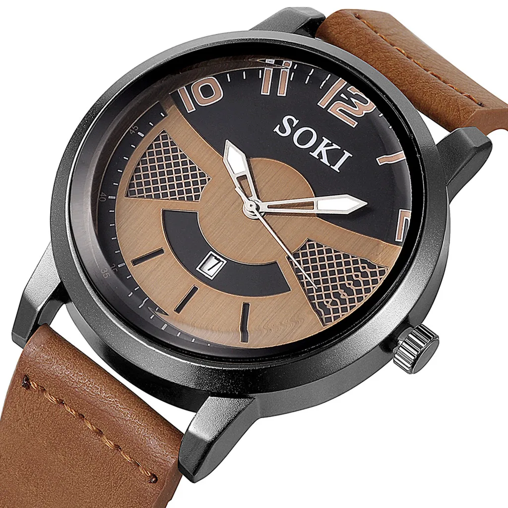 SOKI Men's Wrist Watches 2019 NEW Sport Quartz Leather Watch Man zegarek meski Men Wristwatch Clock relogios masculinos