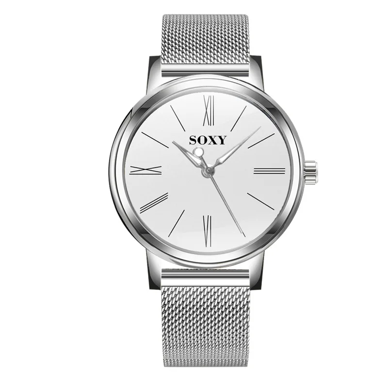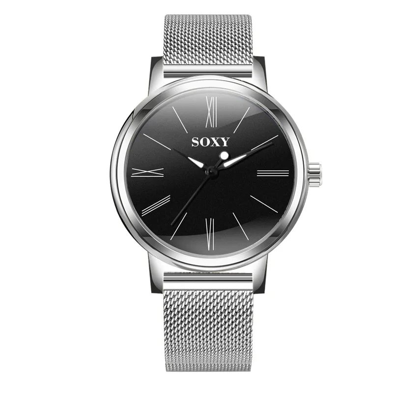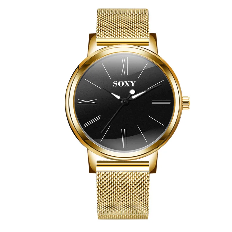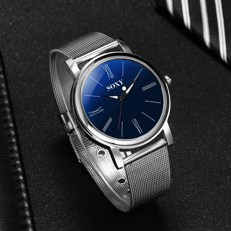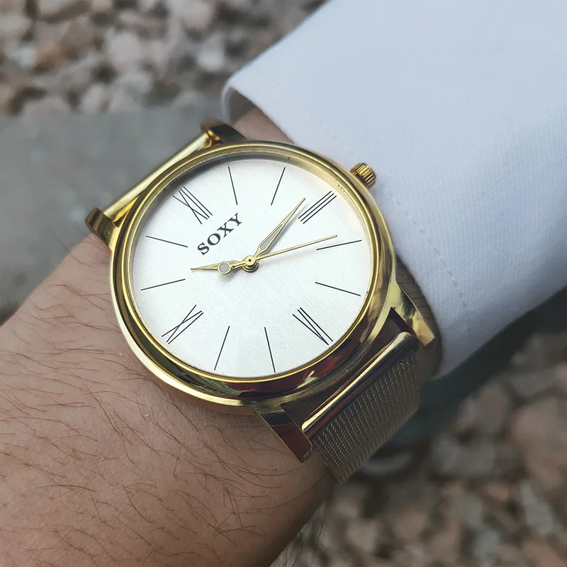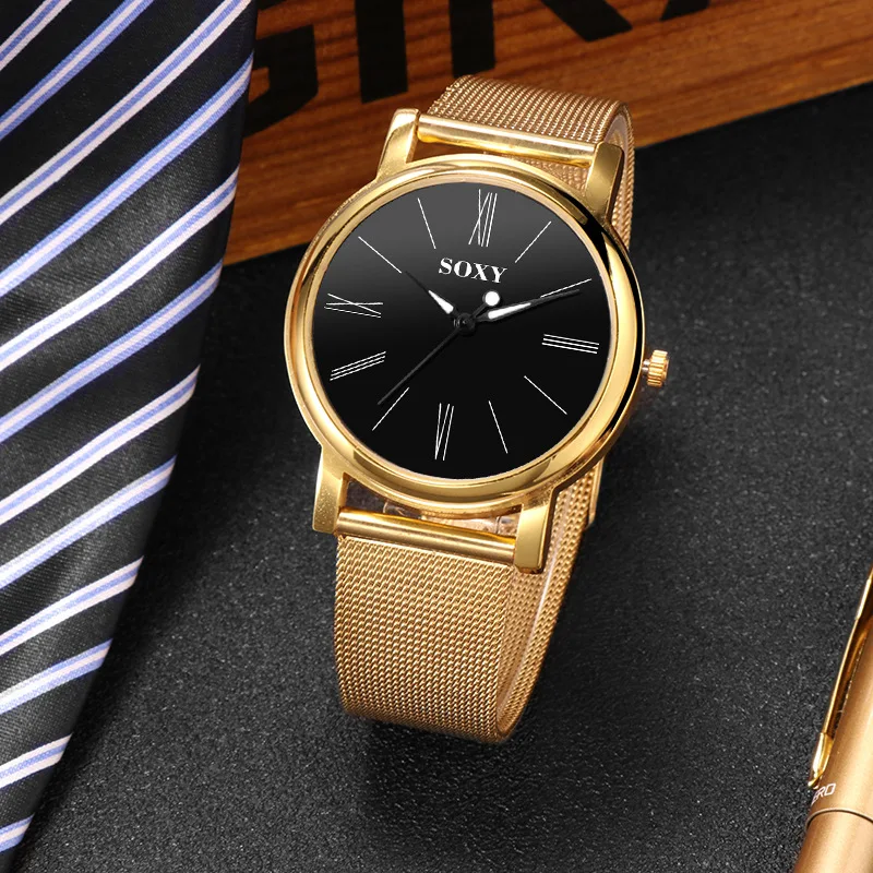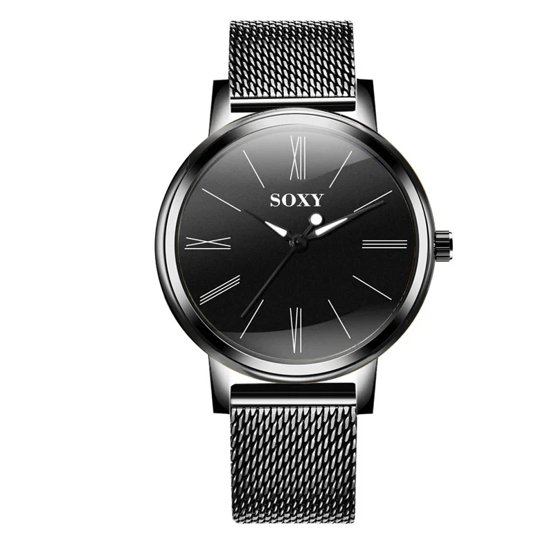 SOXY Brand Men's Watch Deluxe Quartz Male Clock Roman Digital Dial Stainless Steel Strap Zegarek Meski Wristwatch
