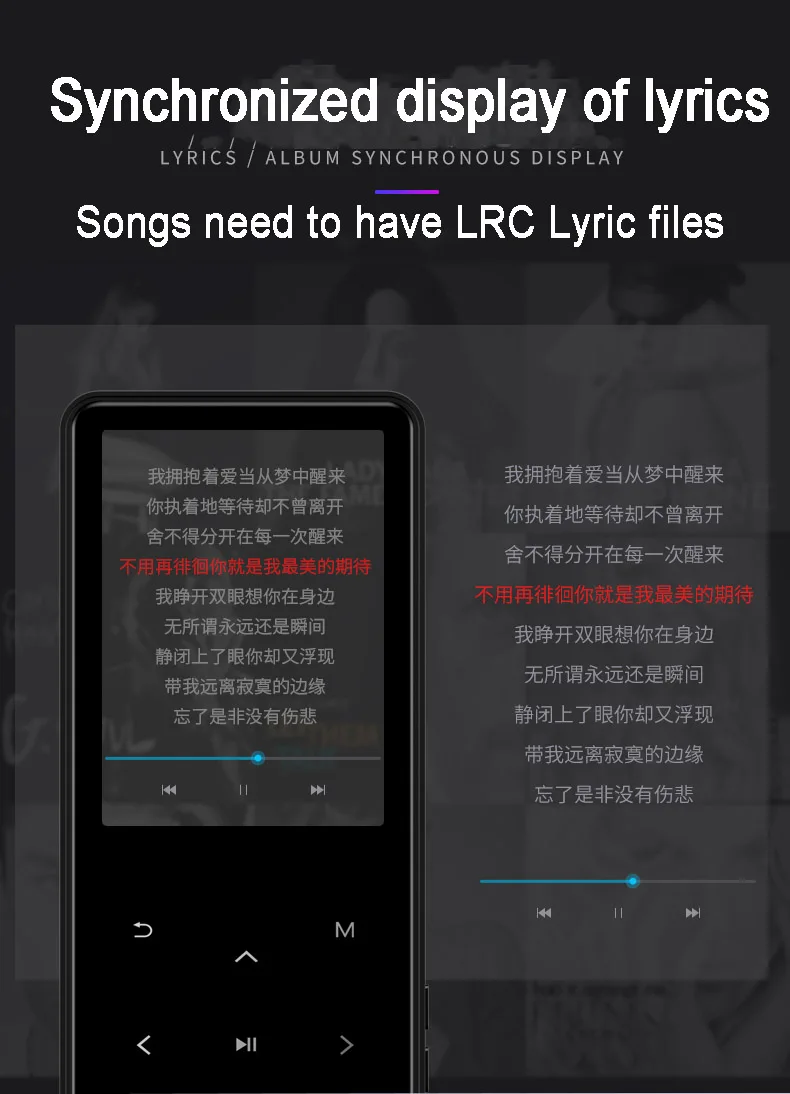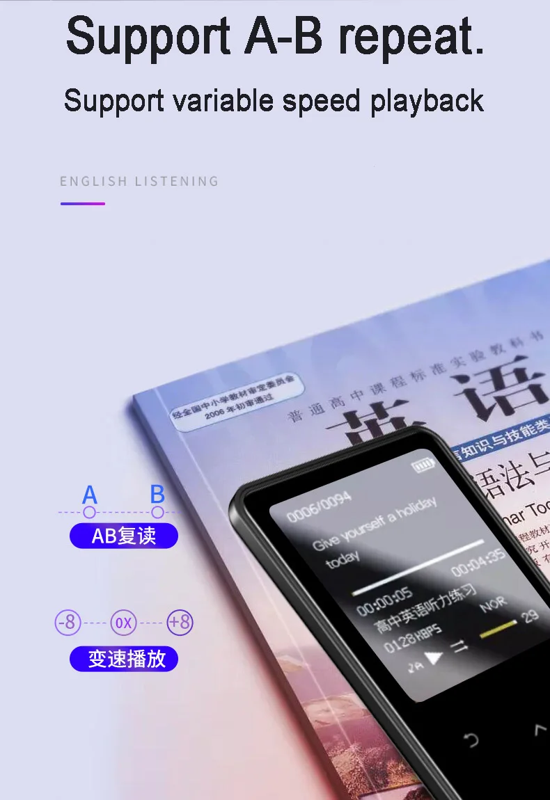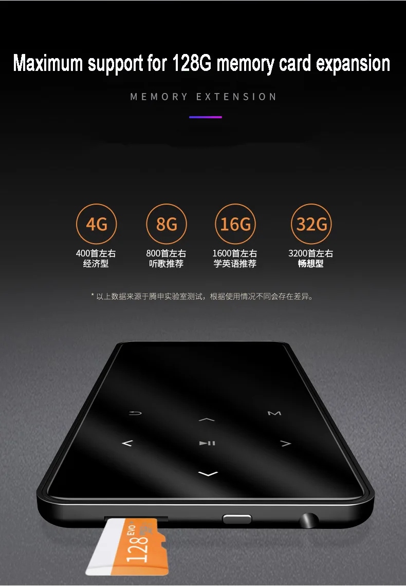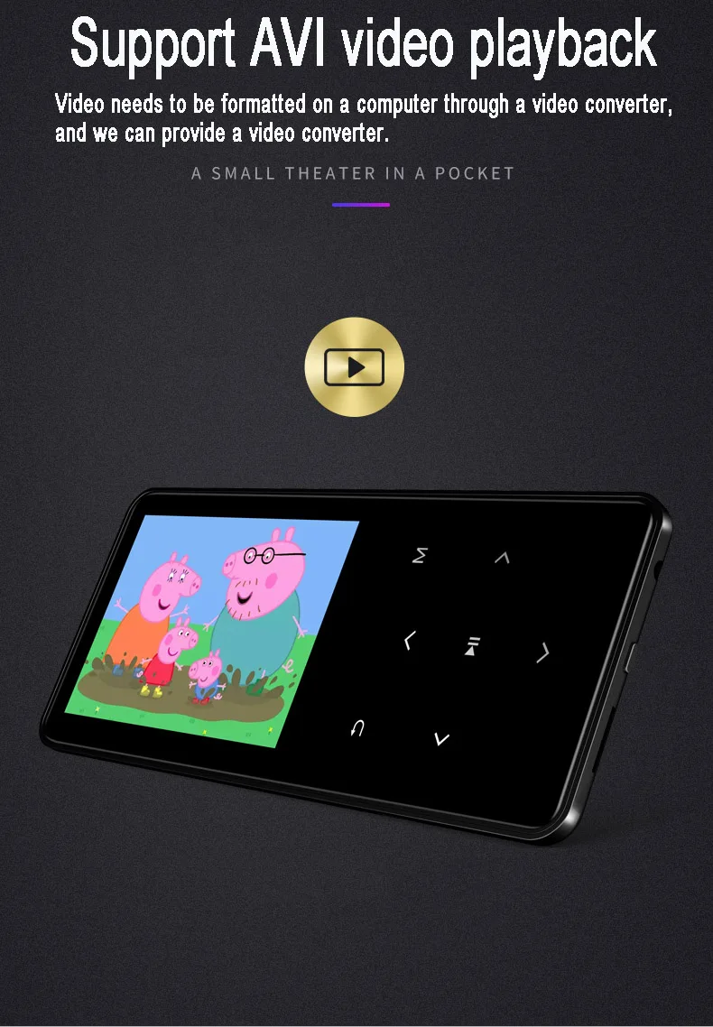 description: Memory description: 8G= built-in 8G 40G = built-in 8G + 32G TF card 64G = built-in 8G + 64G TF card Display: 2.4 inch Screen resolution: 320*240 Dimensions: 106*50*9mm Memory: 8G Music background playback: support LRC lyrics synchronization: support A-B repeat: support Play mode: repeat play, single play, all loop TF card function: support max 128G memory card Variable speed playback:16 times shifting Video: Support AVI format video. Ordinary video needs to be converted by a video converter before it can be played. We will provide a video converter. loudspeaker: support Radio function: support Alarm clock: support Stopwatch: support Text reading: TXT format, support bookmarks Battery: 500mA polymer battery Recording function: support MIC recording Life time: 30-65 hours of song playback in the headphone screen saver state. The video plays for 3-7 hours. Language: Support 20 languages. English, Russian, Italian, Hebrew.Japanese, Korean. Spanish. German.etc. Audio format: APE, AAC, FLAC, MP3, WMA, OGG. Package Including: 1x MP3 Player 1x Wired headphone 1x USB Cable 1x User Manual