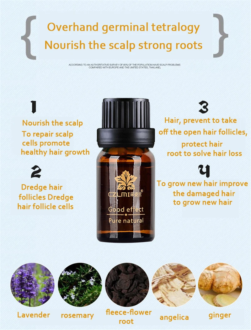 10ml Professional Hair Growth Essence Oil Pure Natural Hair Loss Liquid Dense Hair Fast Sunburst Hair Grow Restoration Pilatory (10ml)
