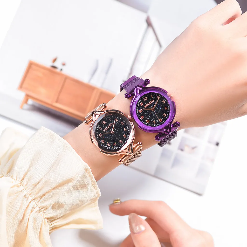 2020 Women Watches Luxury Stainless Steel Dial Strap Fashion Starry Sky Quartz Watch Magnetic Buckle Bracelet Hot Kol Saati*M
