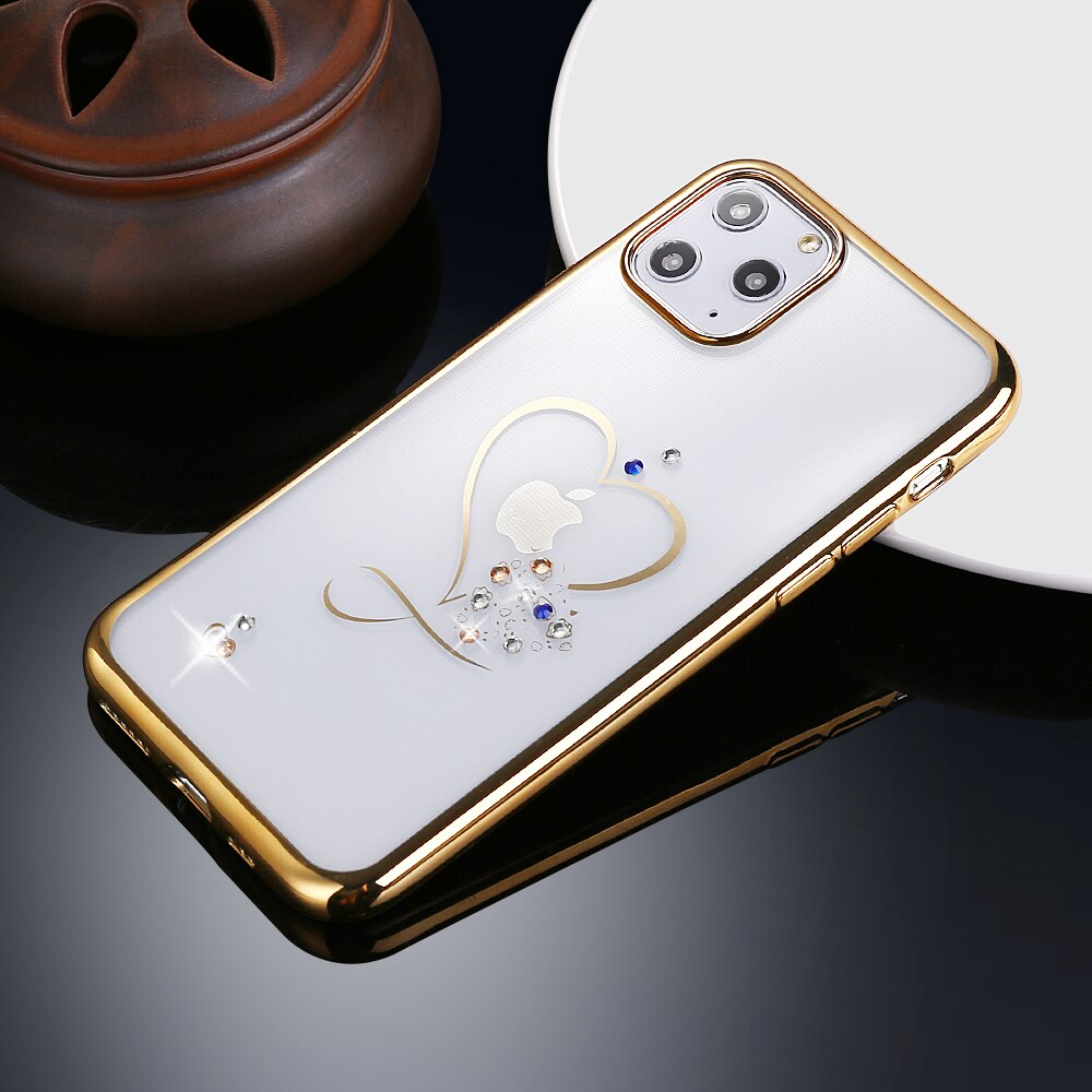 Fashion Love Heart Diamond Phone Case For iPhone 11 Pro X XR XS MAX 7 8 6 6s Plus Plating Transparent Soft Silicone Back Cover
