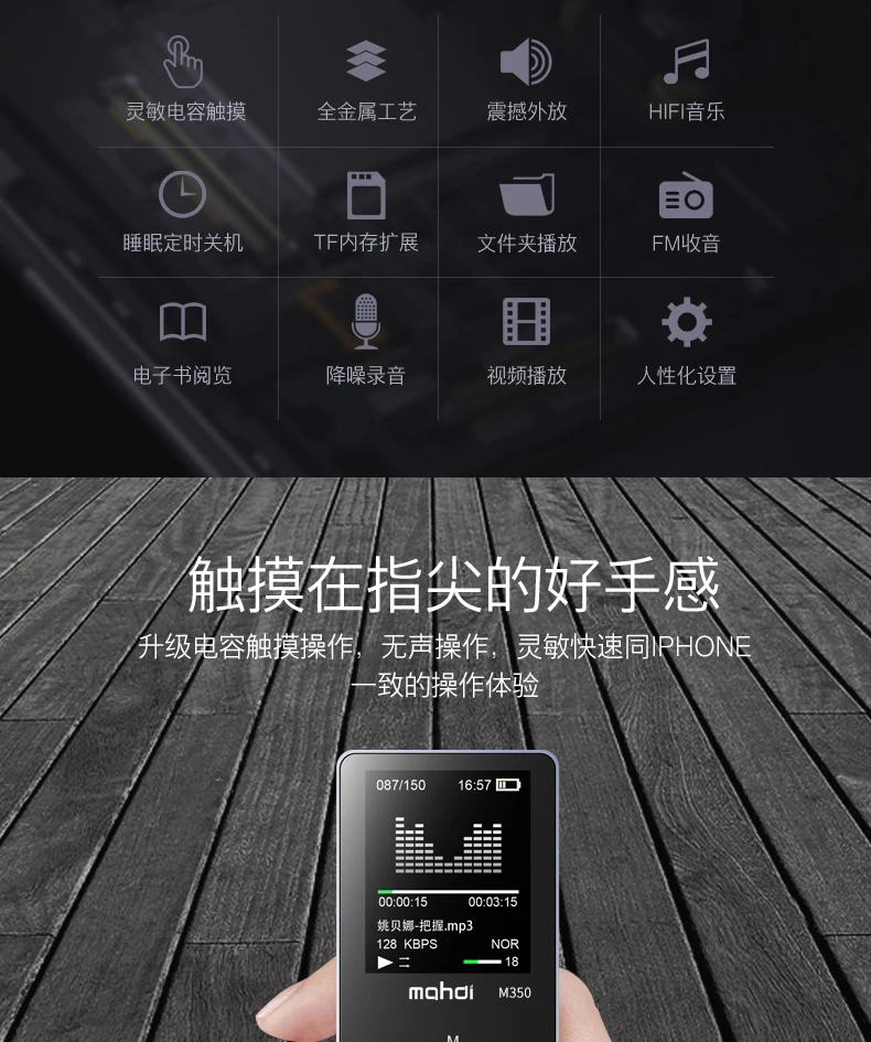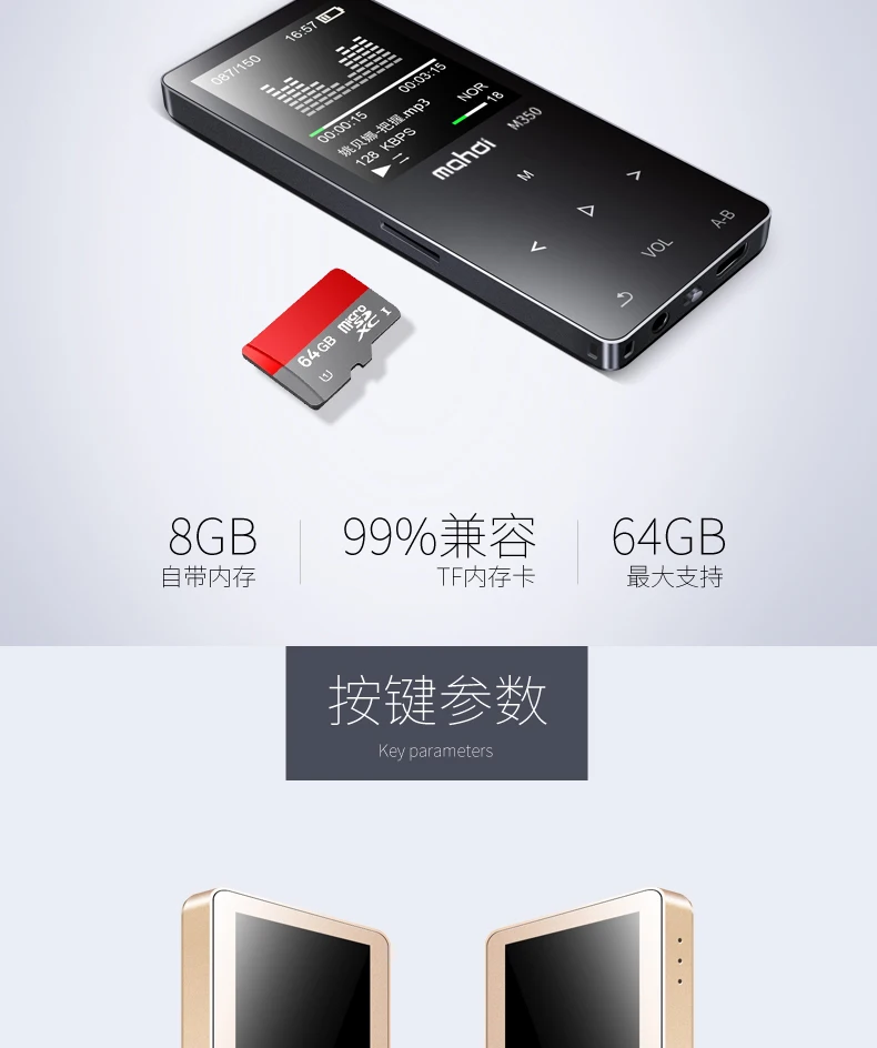 MAHDI 8G Metal MP3 Music Player Built-in Speakers Portable Digital Audio Player with FM Radio Voice Recorder E-book