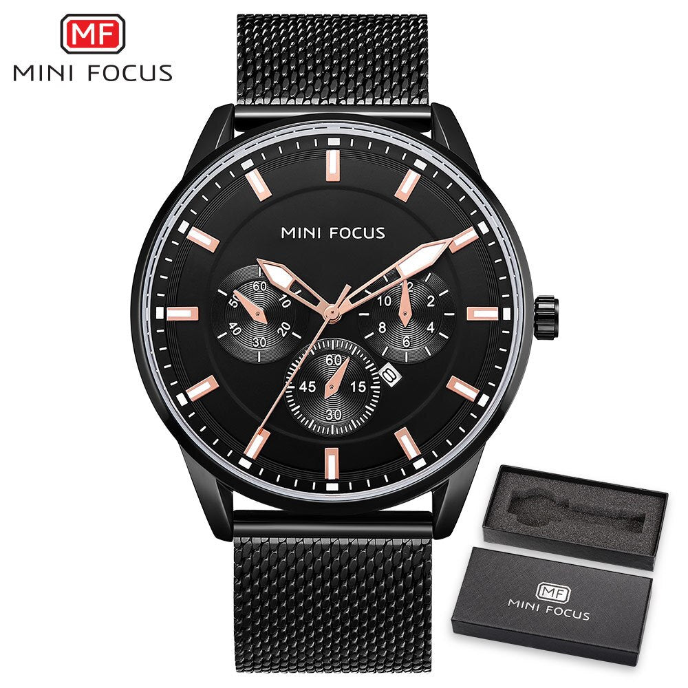 MINI FOCUS Wrist Watch Men Top Brand Luxury Famous Male Clock Mens Watches Quartz Calendar Stainless Steel Mesh Strap Relogio