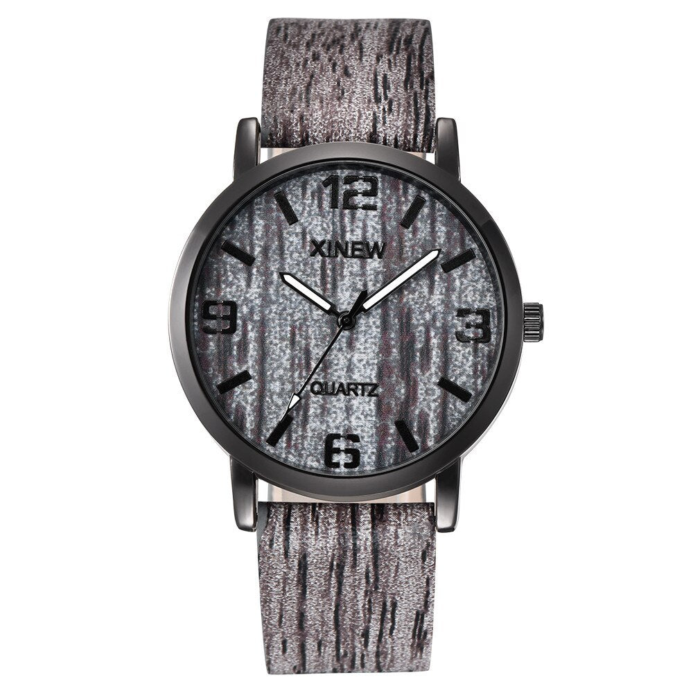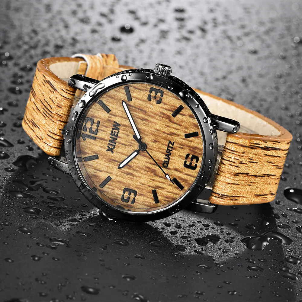 XINEW Women Men Wood Texture Watch Imitation Wooden Retro Leather Quartz Watch