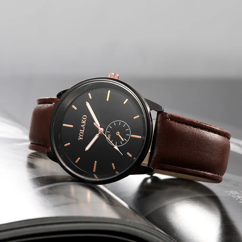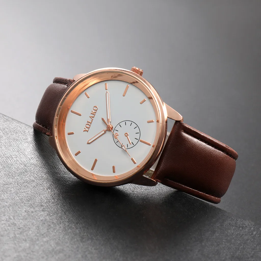 YOLAKO Men's Watch Luxurious Business Leather Belt Simple Mirror Quartz Watch Man Watches Mens 2019 relogio masculino